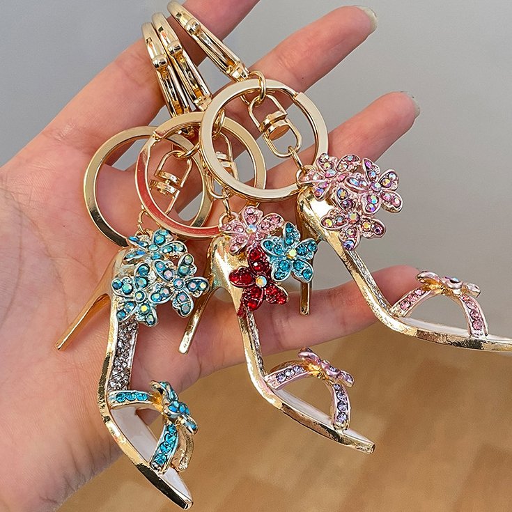 Elevate your style with our Chic Diamond High Heels Keychain. This glamorous accessory features a miniature high-heel design adorned with sparkling diamonds, perfect for adding a touch of elegance to your everyday essentials.