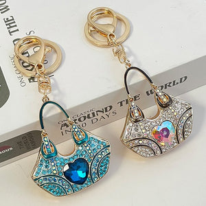 Elevate your accessory with the Glamorous Gemstone Crystal Keychain. This exquisite keychain features a chic handbag design adorned with dazzling gemstones and crystals, adding a touch of luxury and sparkle to your keys or bag.