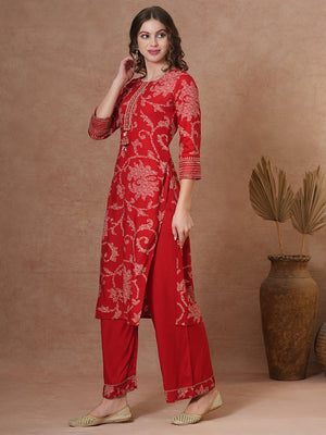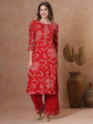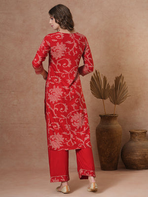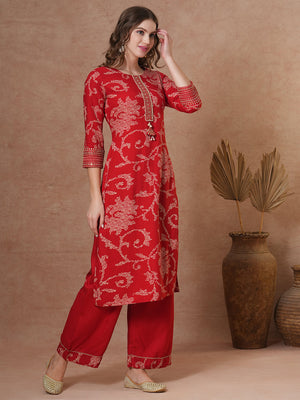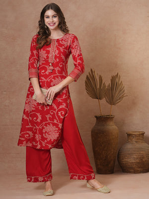 Ethnic Bandhani Printed Straight Fit Kurta with Palazzo - Red