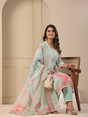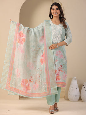 -Straight Fit Kurta- Chikankari Embroidered Yoke