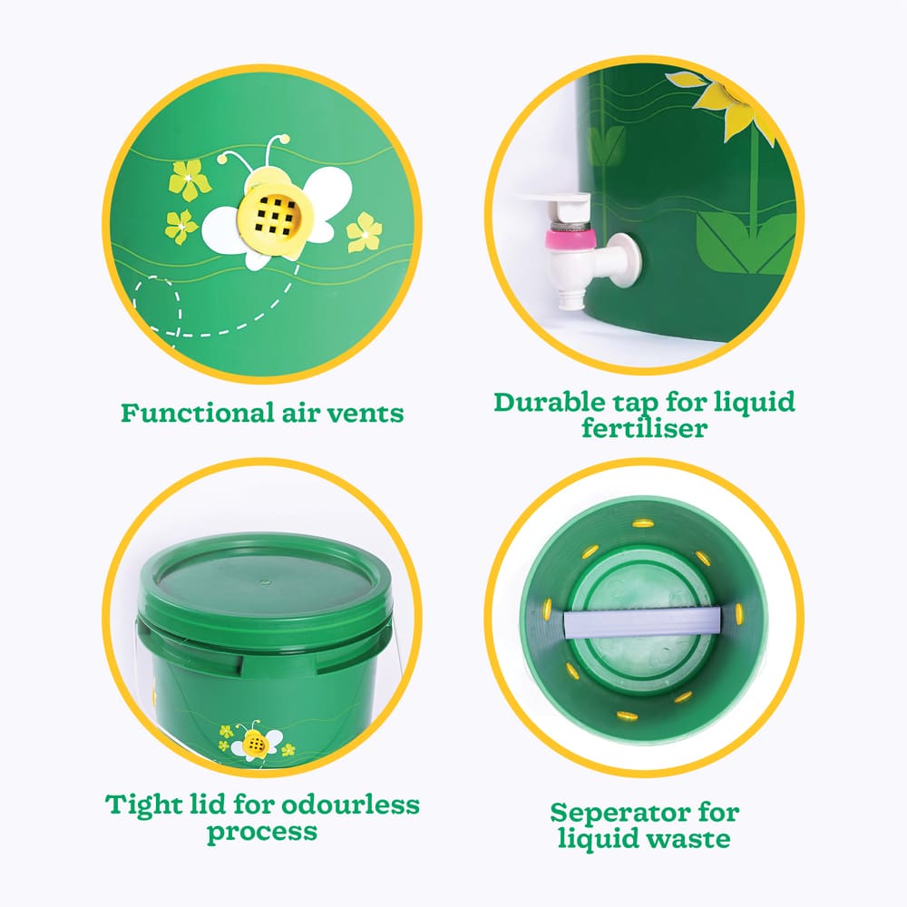 Introducing the Ugaoo Home Compost Bin – Your Perfect Composting Solution! Are you ready to take a step towards a greener future? The Ugaoo Home Compost Bin is here to help you transform kitchen waste into nutrient-rich compost for your plants. With its sleek design and innovative features, this compost bin is the ideal addition to any eco-conscious home. Key Features: Large Capacity: Our compost bin boasts a generous capacity, providing ample space to store all your kitchen scraps, including fruit and vegetable peels, coffee grounds, eggshells, and more. Say goodbye to frequent trips to the outdoor compost pile! Odor-Free Design: We understand that composting can sometimes lead to unpleasant odors in the kitchen. That's why our compost bin features a unique double-layered filter system, ensuring effective odor control and keeping your kitchen fresh and clean. Durable and Easy to Clean: Made from high-quality, BPA-free plastic, the GreenEarth Home Compost Bin is built to last. Its smooth interior surface prevents food particles from sticking, making cleaning a breeze. Simply rinse it with water and mild detergent, and it's ready for the next batch of compost. Secure Lid and Handle: The tightly sealed lid prevents any unwanted pests or insects from accessing your compost, while the sturdy handle allows for easy transportation when it's time to empty the bin. Stylish and Space-Saving: Our compost bin features a sleek and modern design that complements any kitchen decor. Its compact size ensures it won't take up too much counter space, making it perfect for small kitchens or apartments. Educational Composting Guide: To assist you on your composting journey, we provide a comprehensive guide with tips and instructions on how to create the perfect compost. Learn about the ideal ratio, how to troubleshoot common issues, and discover the joy of sustainable gardening. Make a positive impact on the environment while enriching your own garden with nutrient-rich compost. The Ugaoo Compost Bin is the perfect ally for eco-conscious individuals who value sustainability and want to reduce their carbon footprint.
