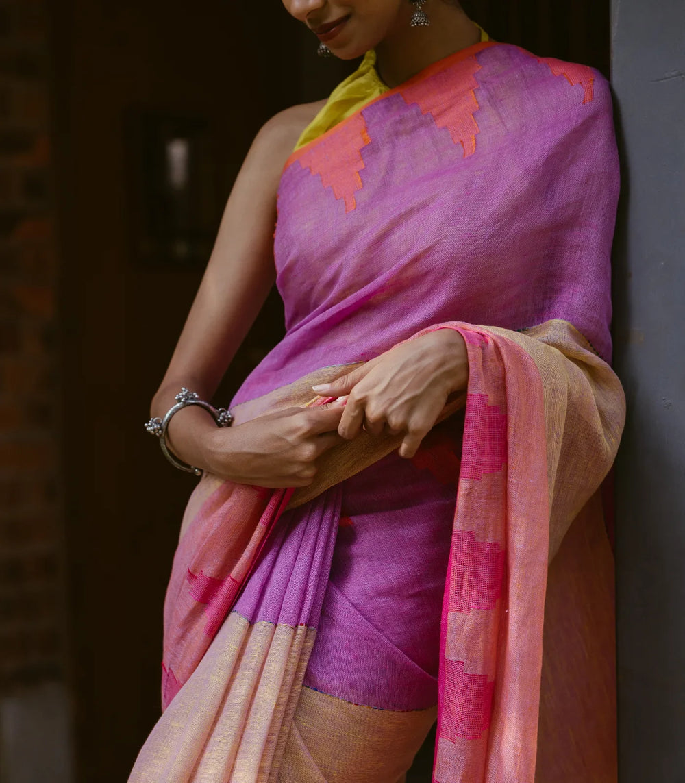 Black Zari Pure Handwoven Linen Saree: Embrace the finesse of handwoven linen accentuated with elegant zari work, perfect for any occasion.