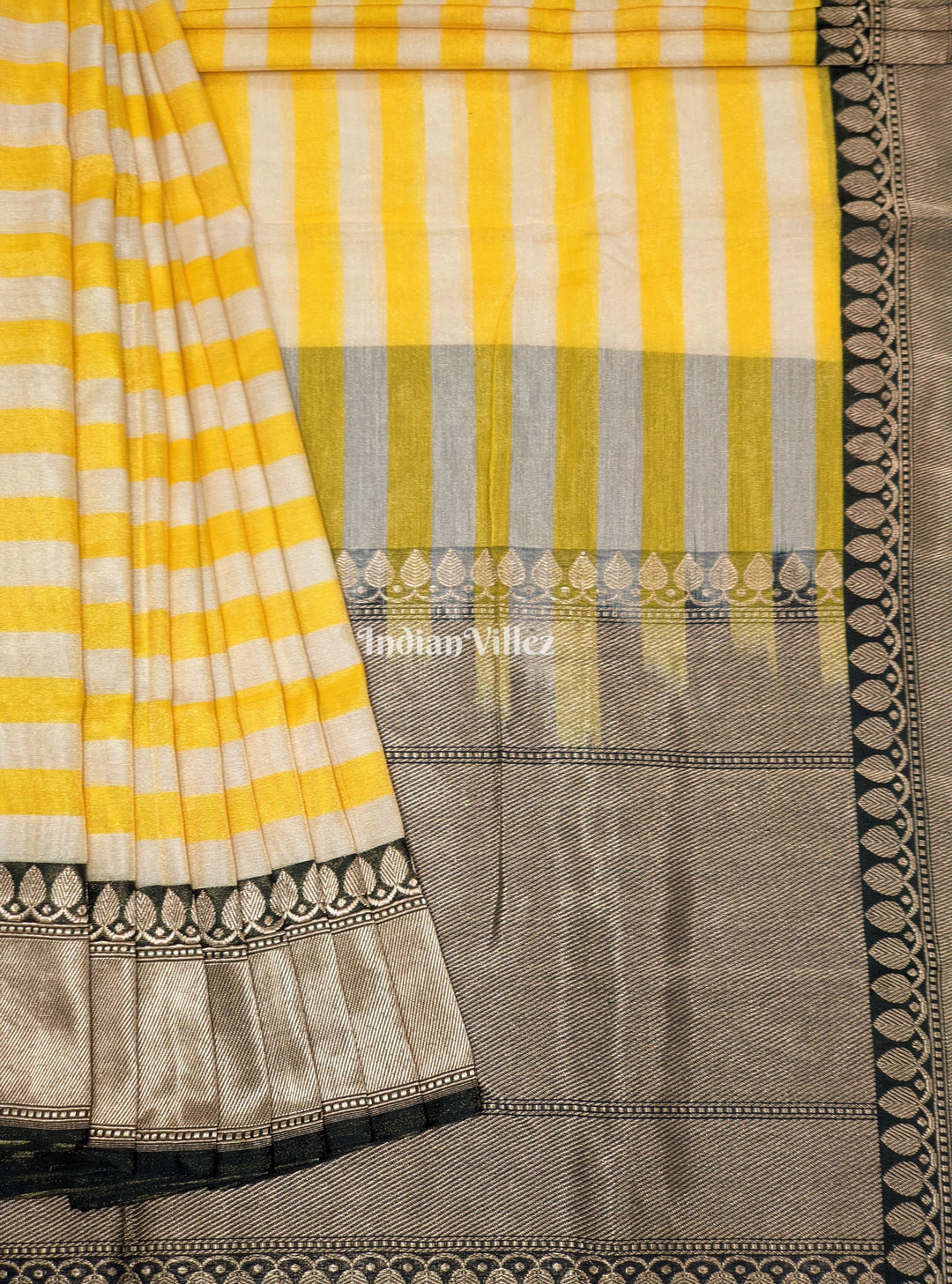 Black Tussar Silk Saree with Tree Butta Design: Experience the luxury of Tussar silk adorned with intricate tree butta motifs, offering a blend of traditional artistry and modern aesthetics.