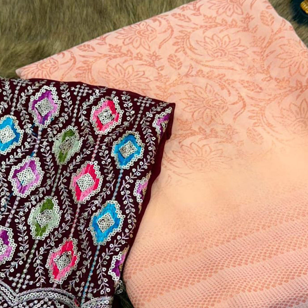 Midnight Black Lotus Leaf Patterned Saree: A stunning piece featuring delicate lotus leaf patterns, adding a touch of grace to your ensemble.