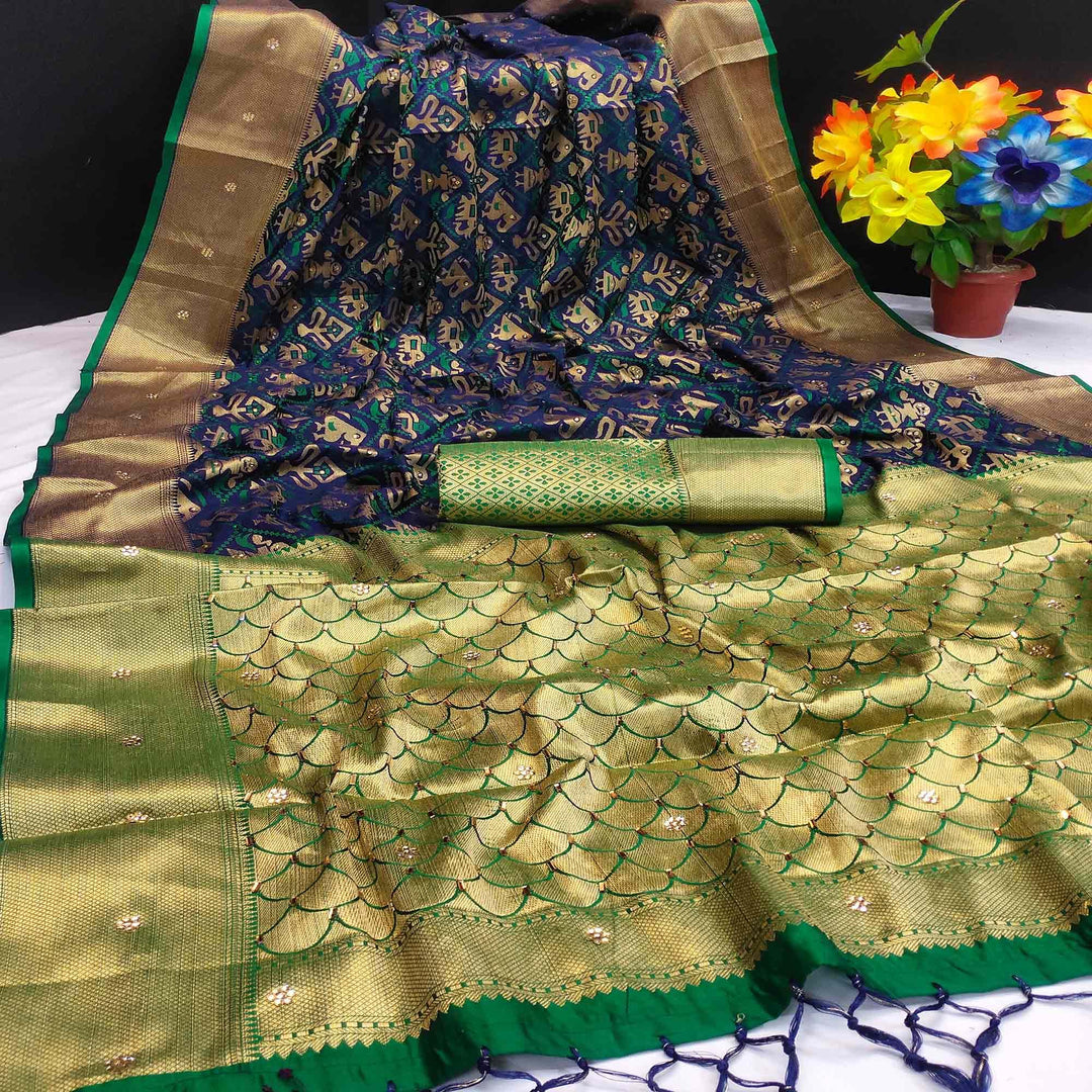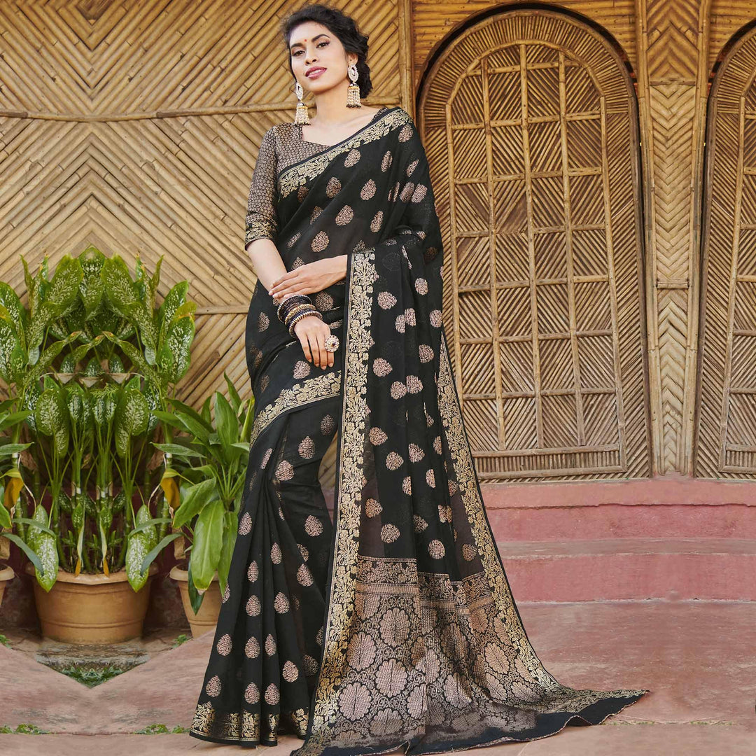 Midnight Black Lotus Leaf Patterned Saree: A stunning piece featuring delicate lotus leaf patterns, adding a touch of grace to your ensemble.