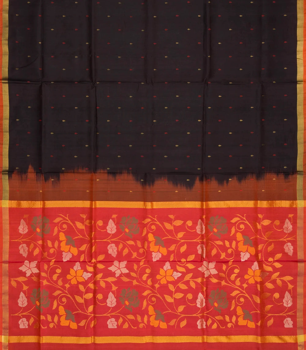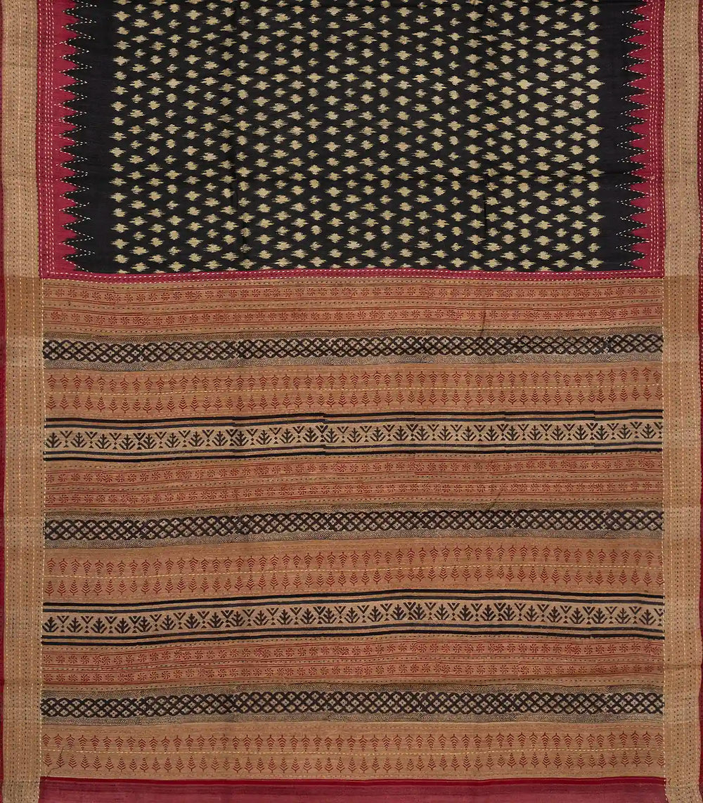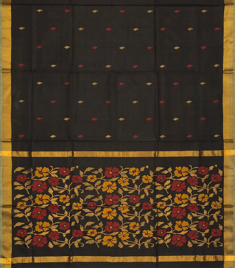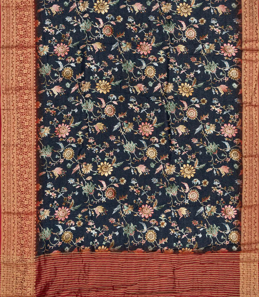 Black Tussar Silk Saree with Tree Butta Design: Experience the luxury of Tussar silk adorned with intricate tree butta motifs, offering a blend of traditional artistry and modern aesthetics.