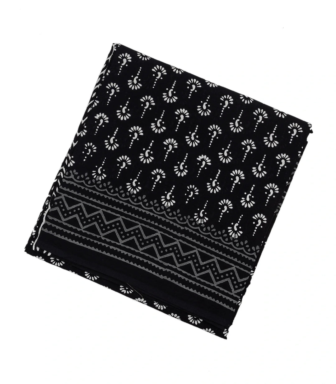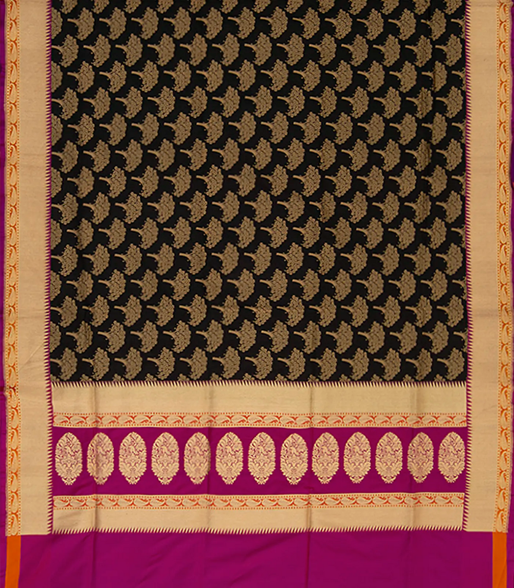 Midnight Black Lotus Leaf Patterned Saree: A stunning piece featuring delicate lotus leaf patterns, adding a touch of grace to your ensemble.