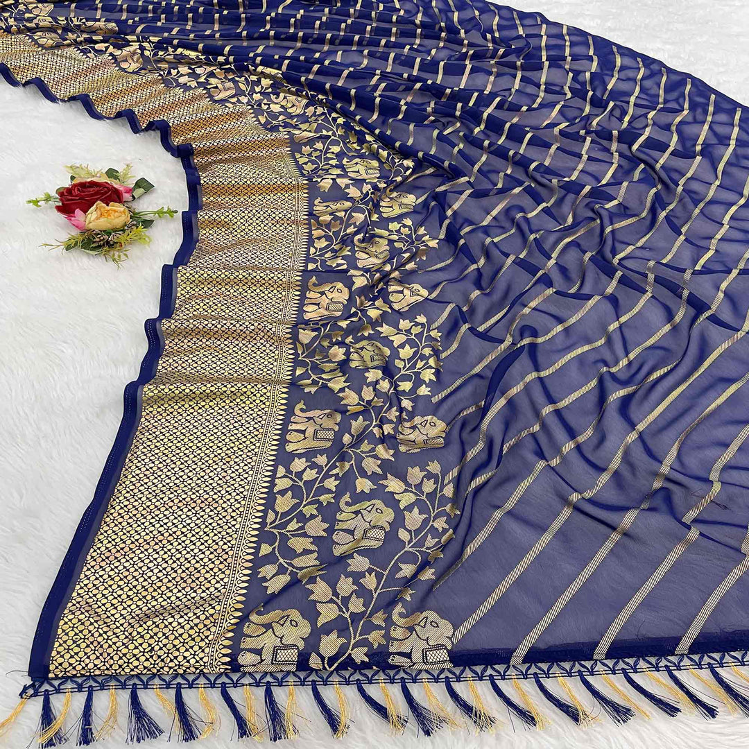 Midnight Black Lotus Leaf Patterned Saree: A stunning piece featuring delicate lotus leaf patterns, adding a touch of grace to your ensemble.