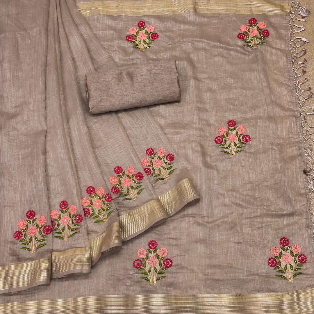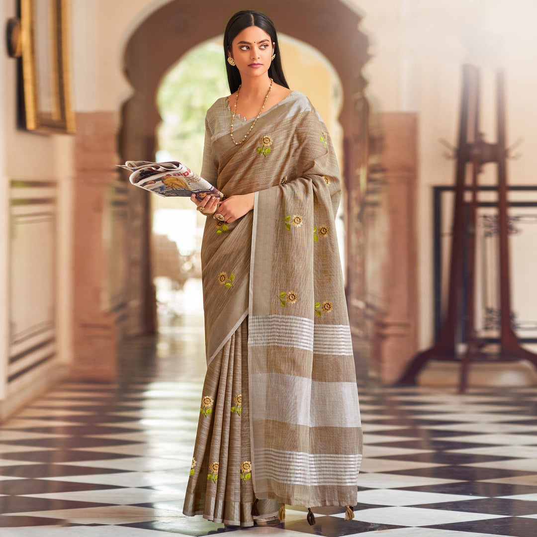 Black Zari Pure Handwoven Linen Saree: Embrace the finesse of handwoven linen accentuated with elegant zari work, perfect for any occasion.