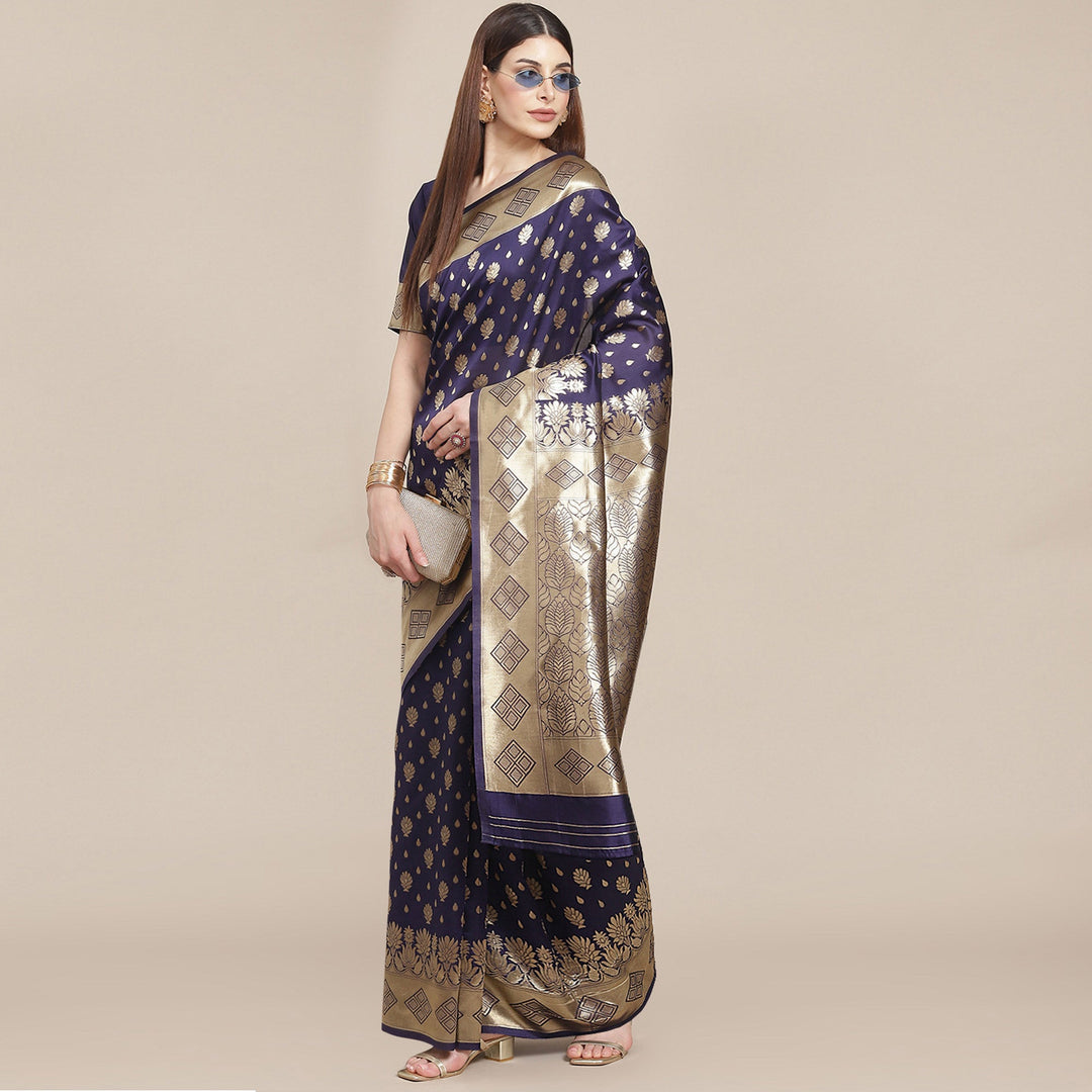 Midnight Black Lotus Leaf Patterned Saree: A stunning piece featuring delicate lotus leaf patterns, adding a touch of grace to your ensemble.