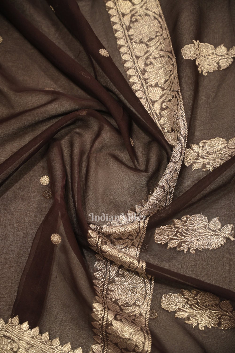 Black Zari Pure Handwoven Linen Saree: Embrace the finesse of handwoven linen accentuated with elegant zari work, perfect for any occasion.