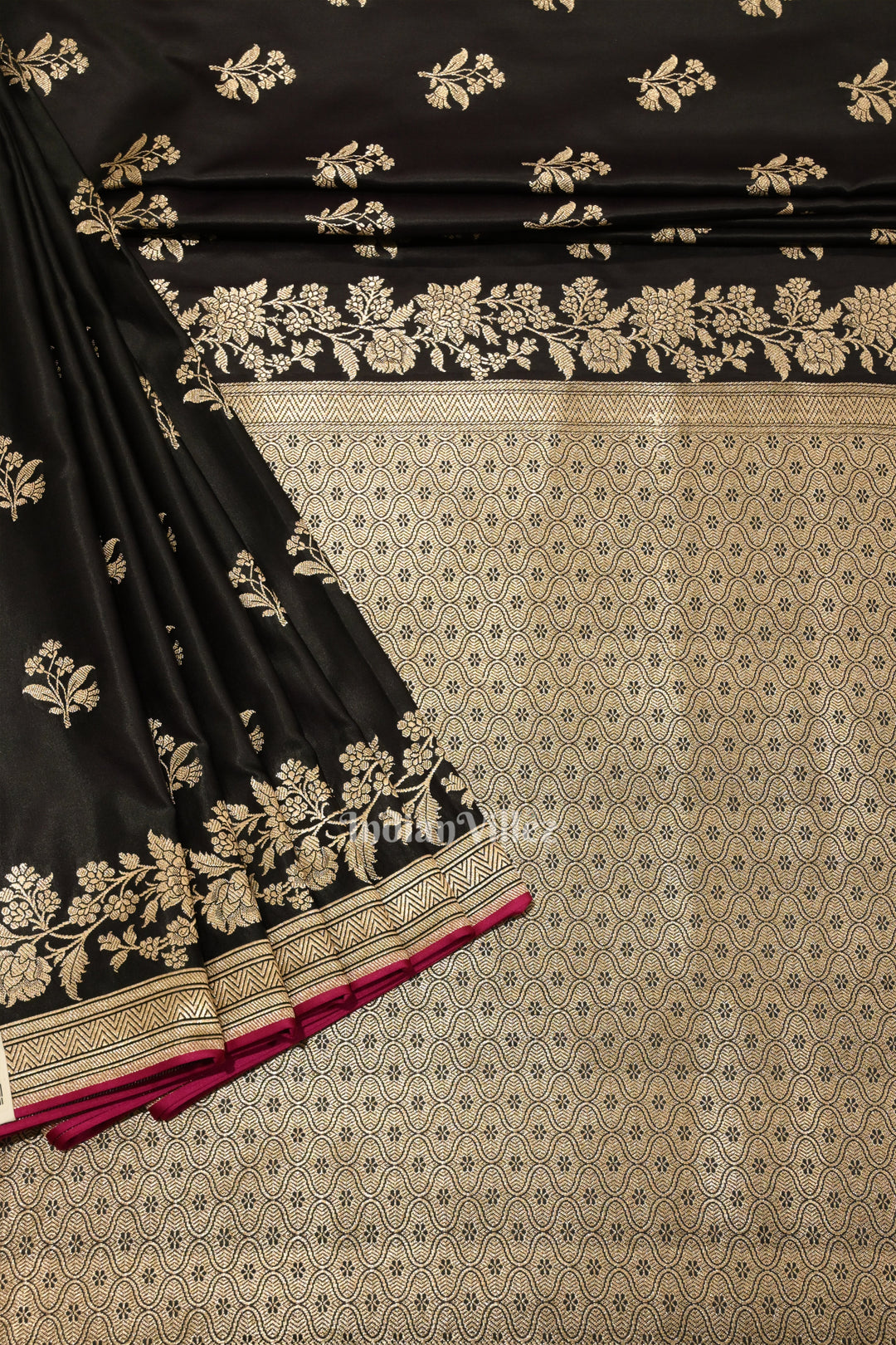Midnight Black Lotus Leaf Patterned Saree: A stunning piece featuring delicate lotus leaf patterns, adding a touch of grace to your ensemble.