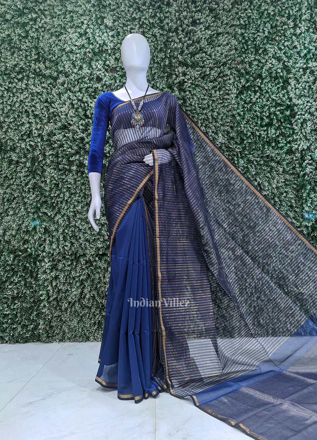 Midnight Black Lotus Leaf Patterned Saree: A stunning piece featuring delicate lotus leaf patterns, adding a touch of grace to your ensemble.