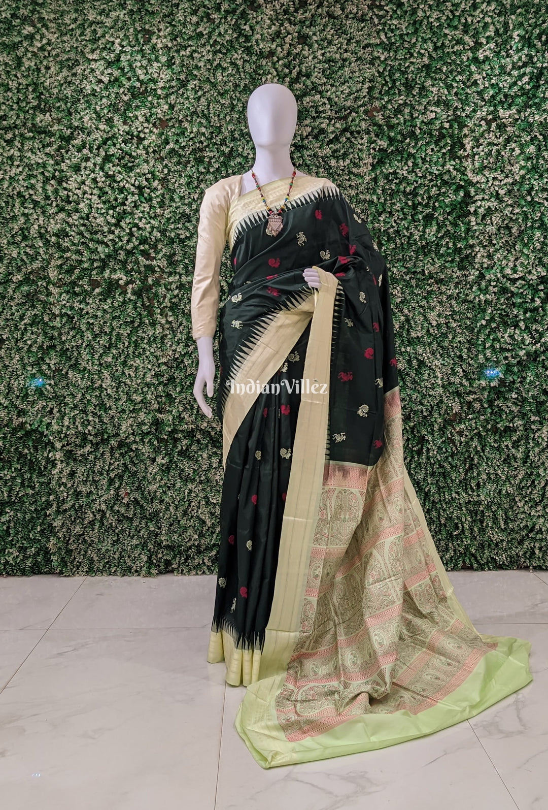 Black Tussar Silk Saree with Tree Butta Design: Experience the luxury of Tussar silk adorned with intricate tree butta motifs, offering a blend of traditional artistry and modern aesthetics.