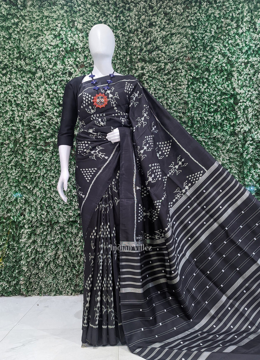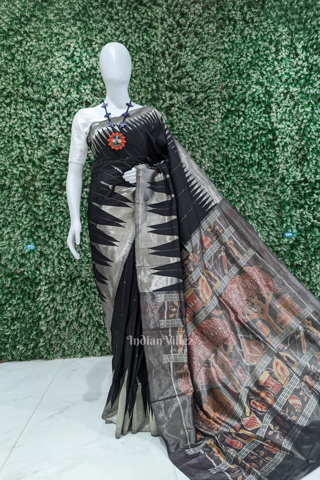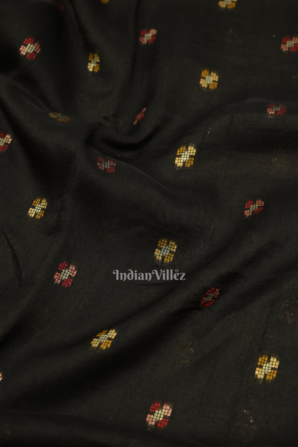Black Tussar Silk Saree with Tree Butta Design: Experience the luxury of Tussar silk adorned with intricate tree butta motifs, offering a blend of traditional artistry and modern aesthetics.