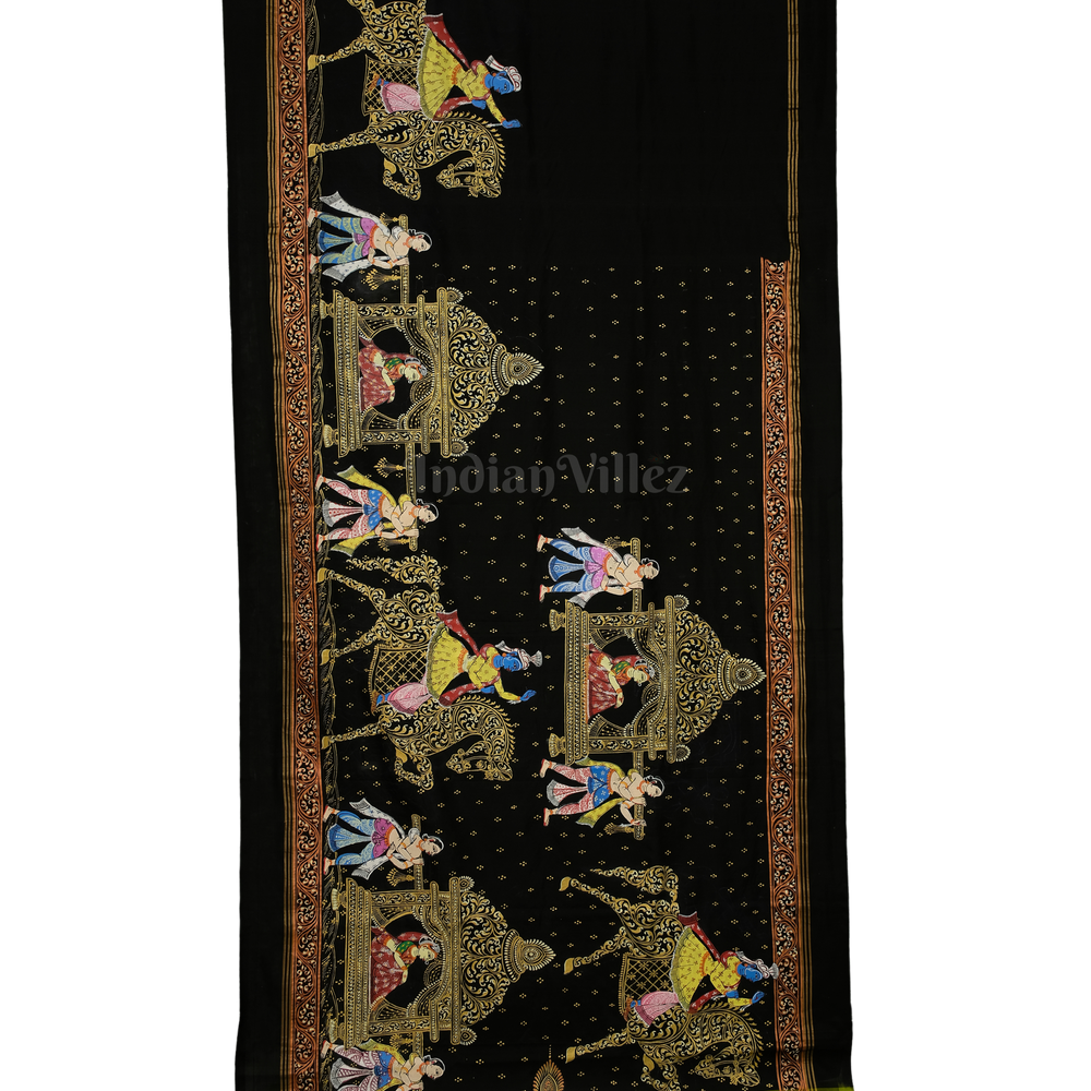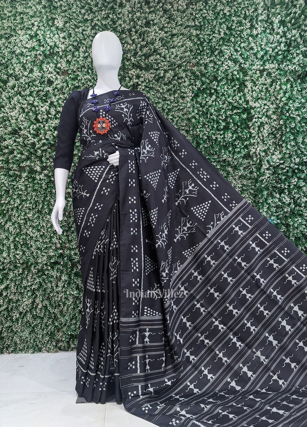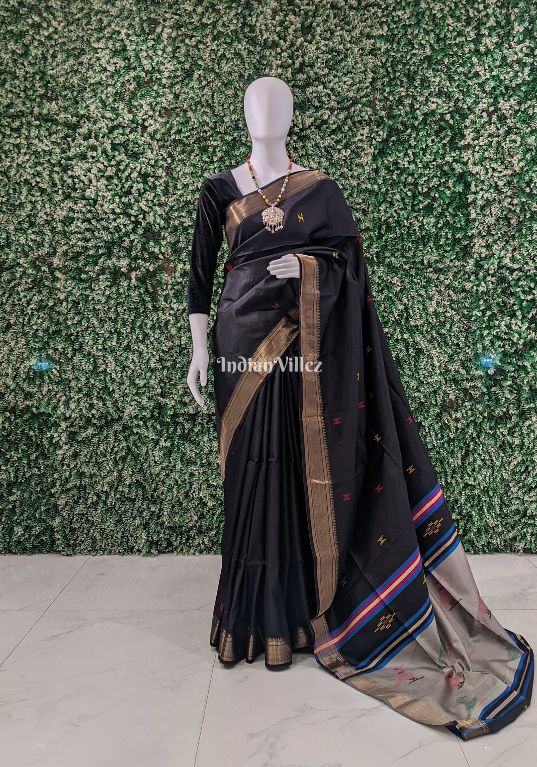 Black Tussar Silk Saree with Tree Butta Design: Experience the luxury of Tussar silk adorned with intricate tree butta motifs, offering a blend of traditional artistry and modern aesthetics.