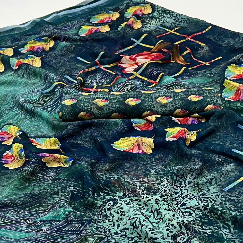 Midnight Black Lotus Leaf Patterned Saree: A stunning piece featuring delicate lotus leaf patterns, adding a touch of grace to your ensemble.