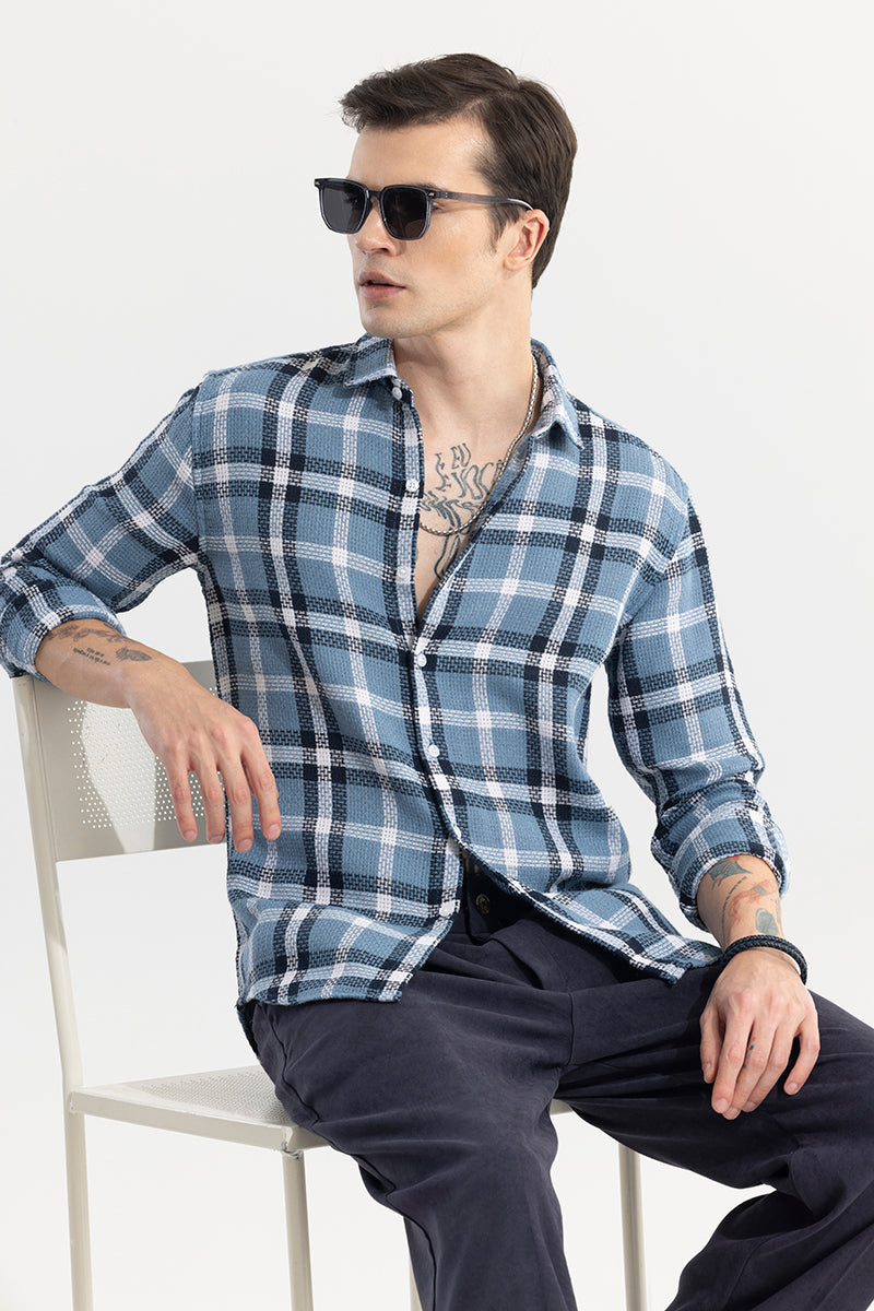 "Unleash your inner adventurer with the Gridline Blue Checks Shirt. This bold and daring shirt features a check pattern, perfect for casual outings. Step out of your comfort zone and make a statement with this shirt. Get ready to turn heads and take on any challenge with confidence!"