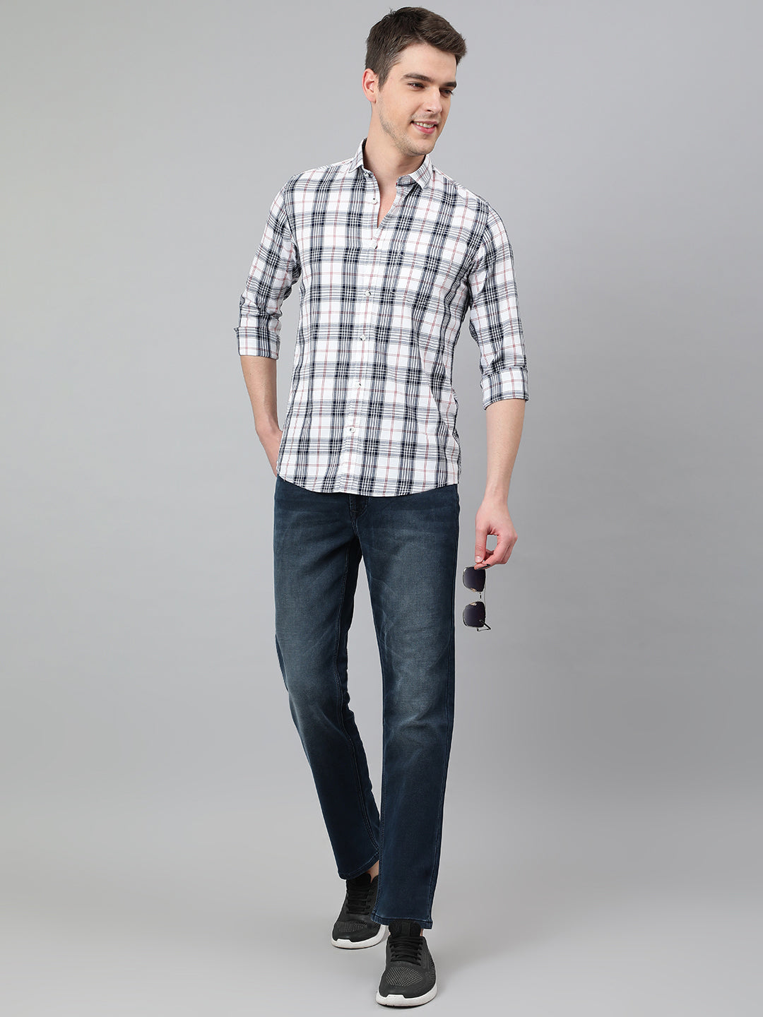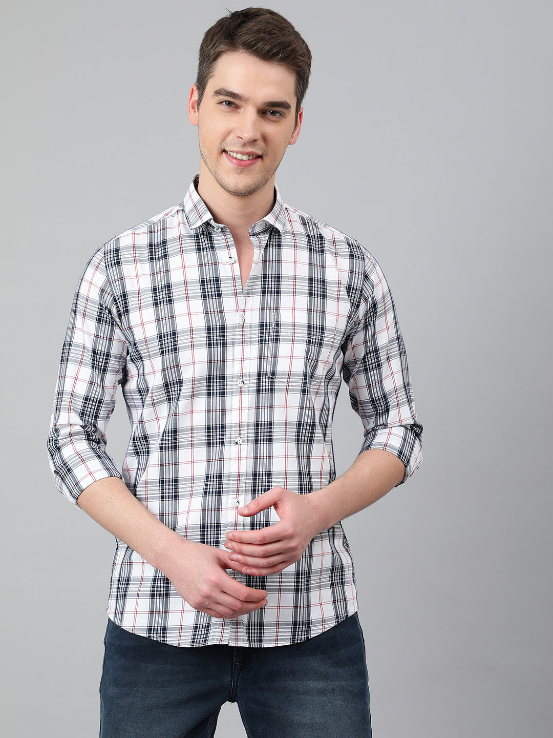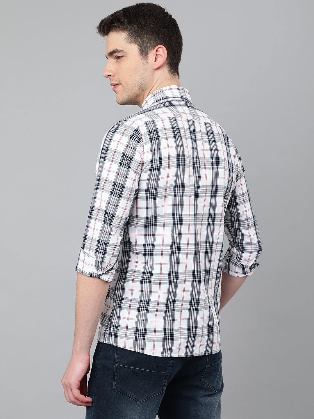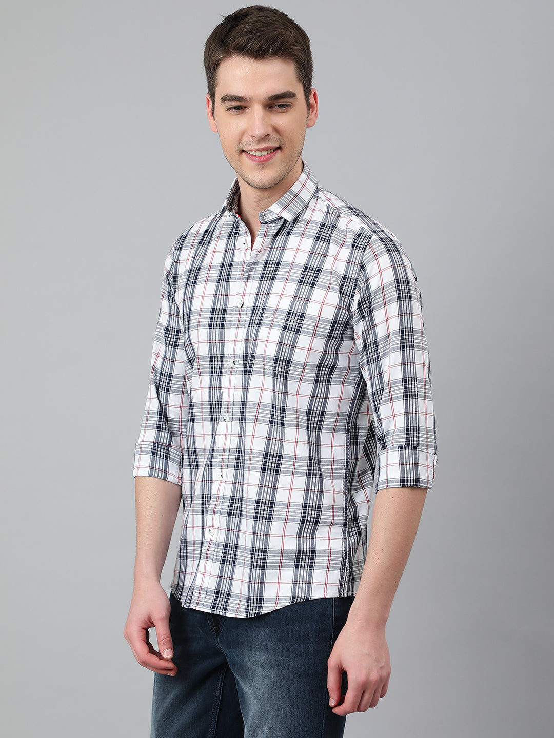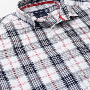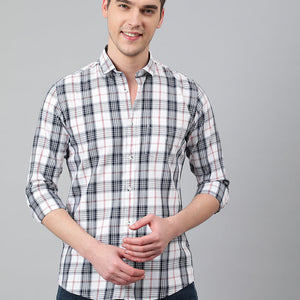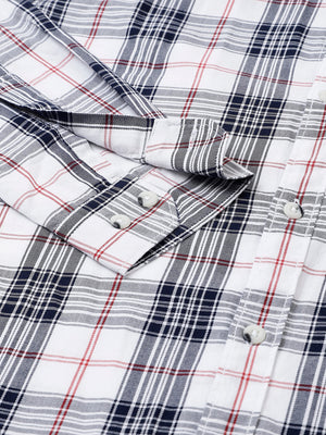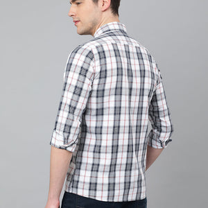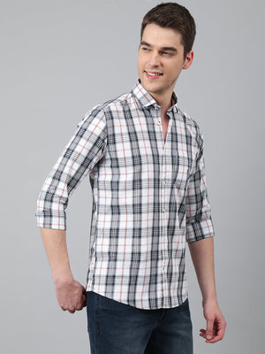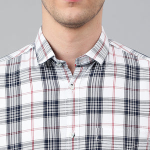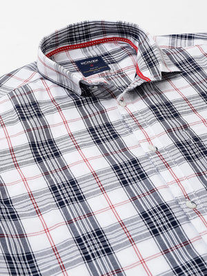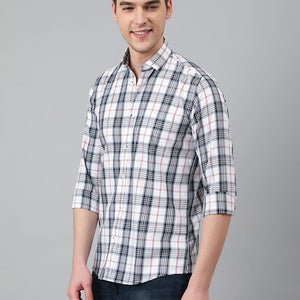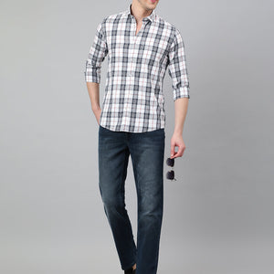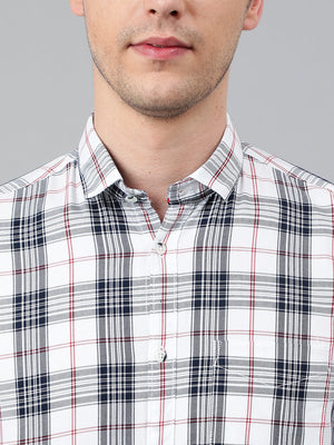 Men White Standard Fit Checkered Casual Shirt