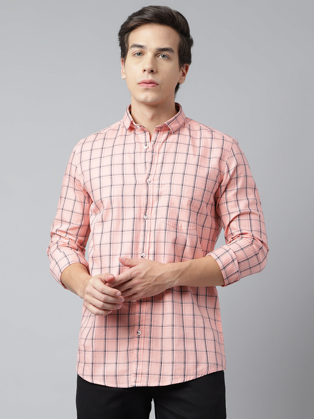 For a casual evening look, opt for our Peach Standard Fit casual shirt which is the trend this upcoming season. This shirt displays a spread collar, curved hem, one patch pocket and is finished with Richlook’s one-of-a-kind buttons that give it a unique look and feel. Pair it with your favourite chinos and sneakers to complete the look.