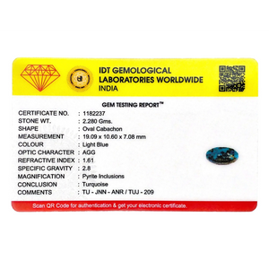 Original Natural Turquoise weighing 11.4 Carat (12.67 Ratti) From Iran (IDT lab certified)