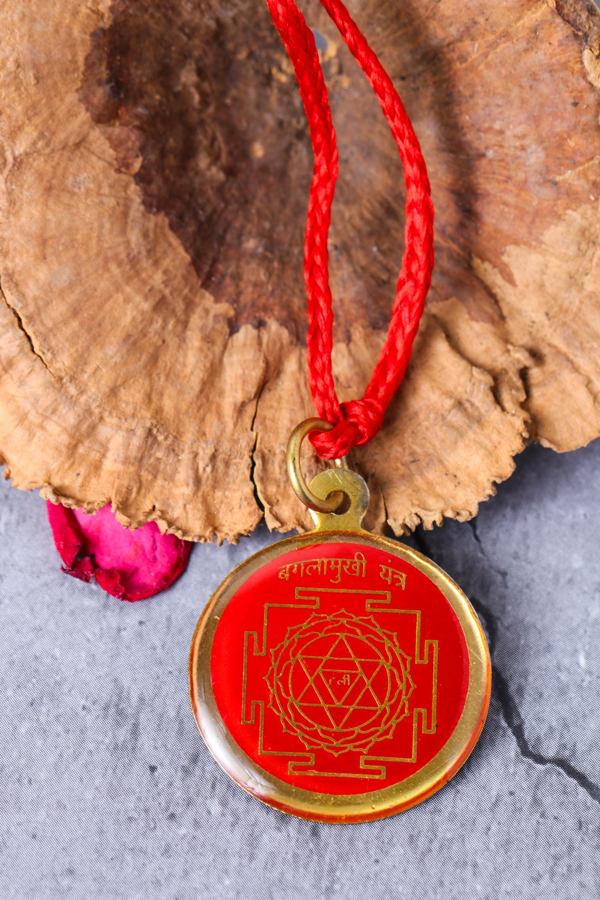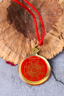 Metal locket with vaidik geometric diagram, along with a thread to adjust length as per your preference.