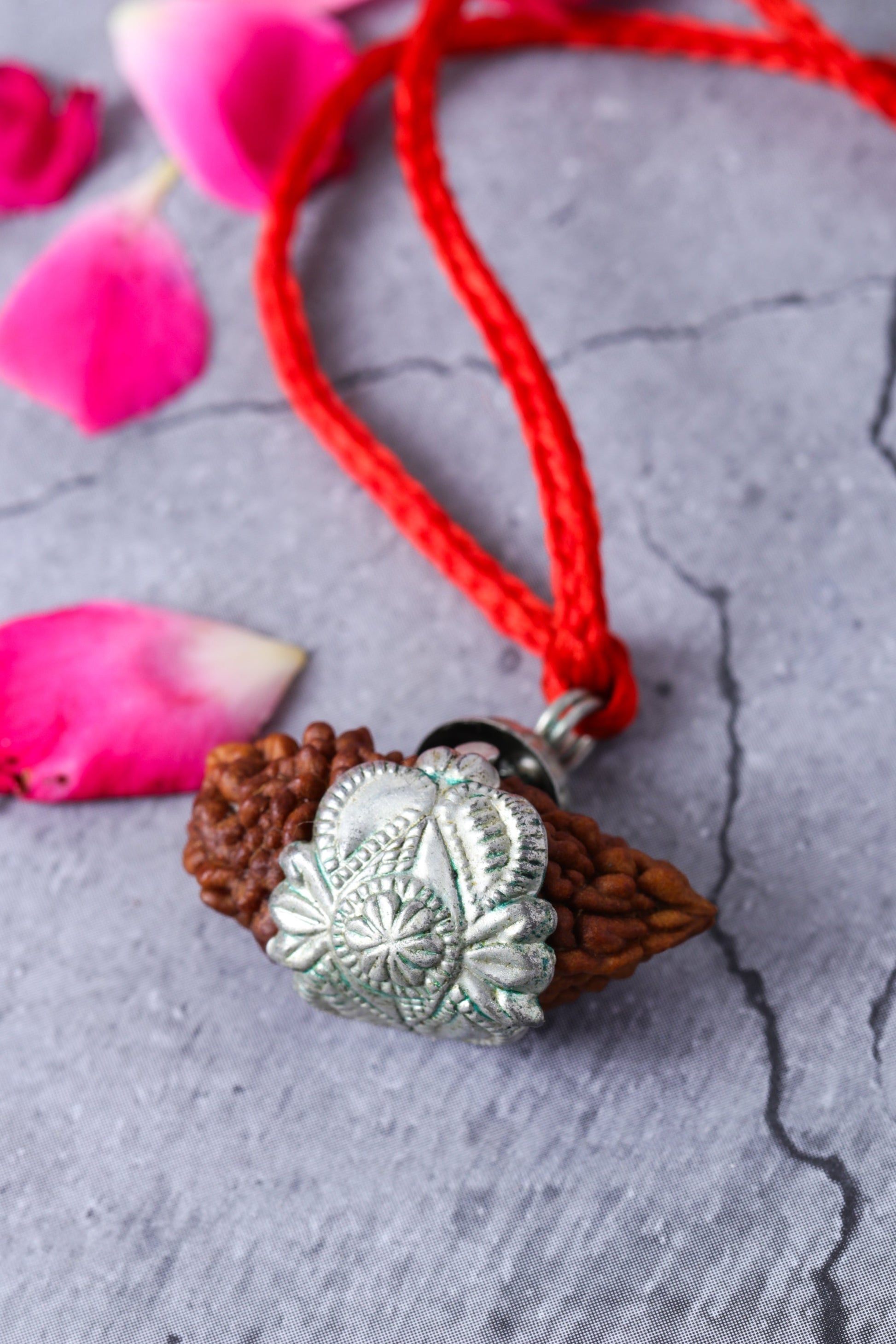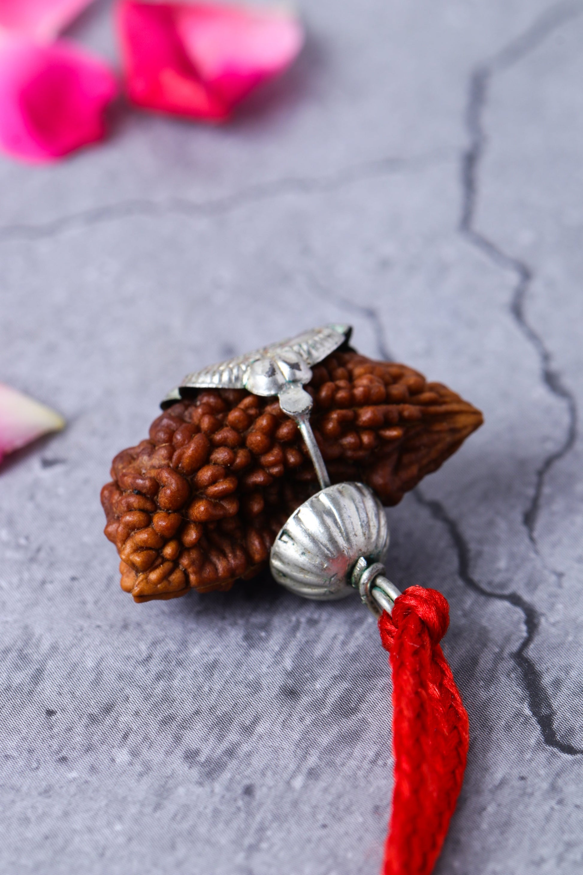 Benefits: This rudraksha is pre- energised and ready to wear with the silver capping with 'Om' inscription and comes with a thread for easy wear as a necklace or bracelet. You can adjust the length of the thread as per your convenience. Since these are natural products, actual product may vary slightly from the images.
