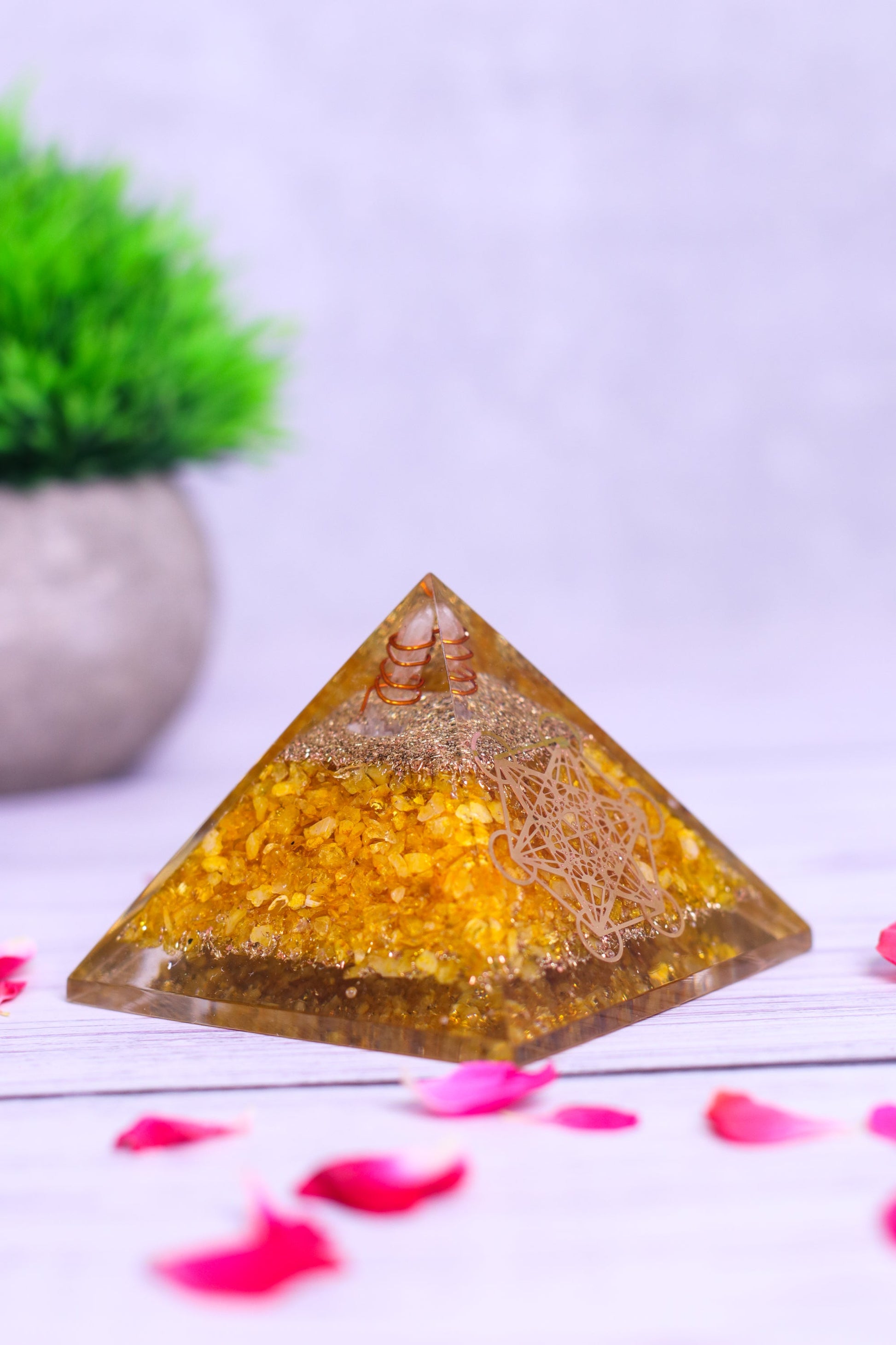 STUDIO VAIDIK Citrine Orgonite Pyramid Decorative Showpiece