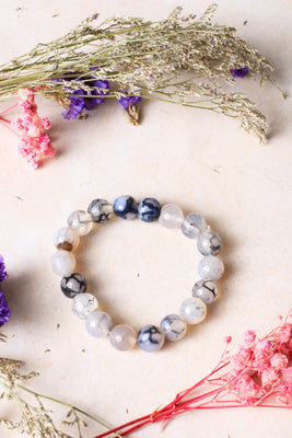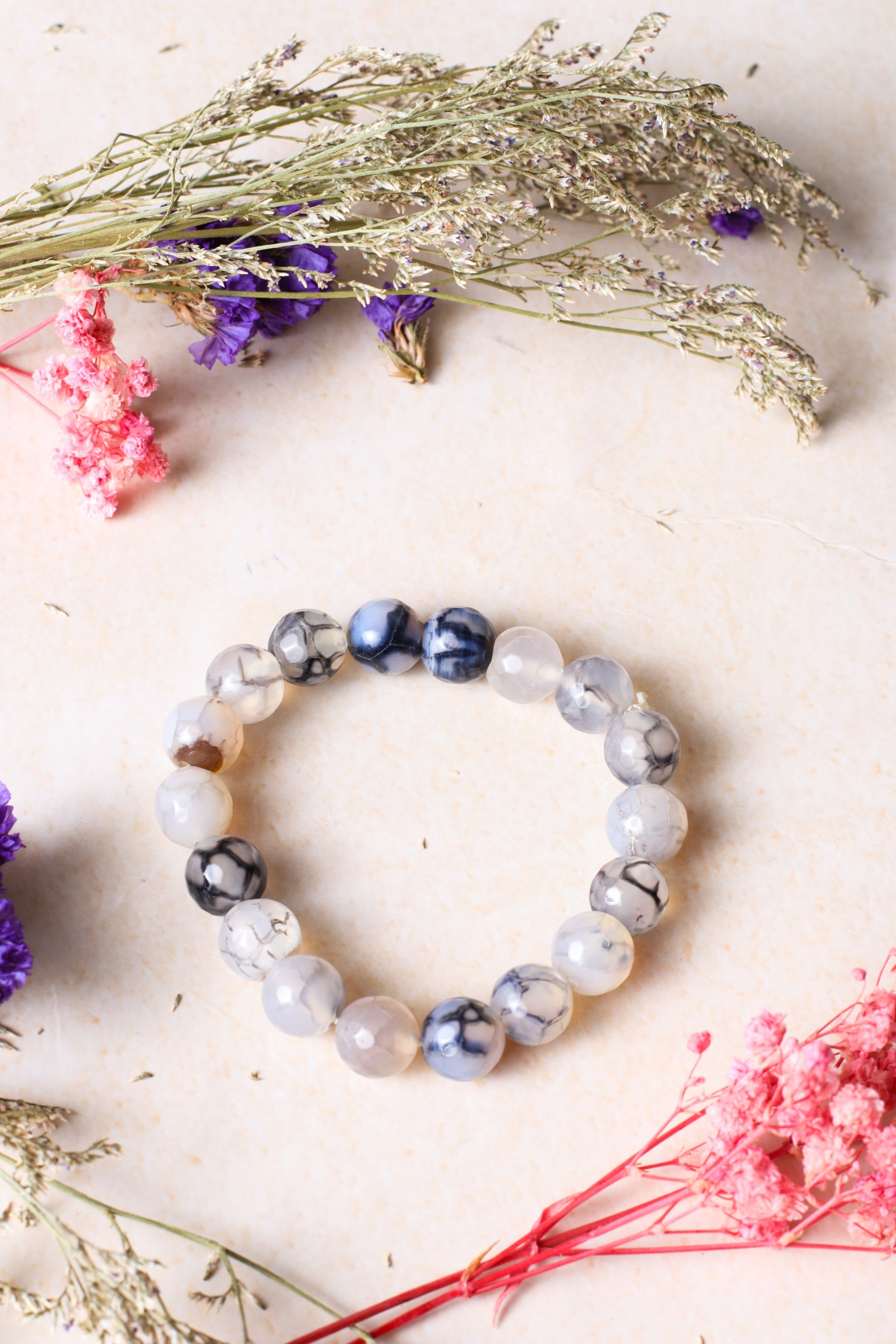 Benefits : A dragon vein agate bracelet is believed to enhance mental focus and analytical abilities, aiding in making clear and confident decisions. It is also thought to promote emotional strength and resilience, helping to overcome fears and negative emotions. Additionally, dragon vein agate is known for its protective qualities, shielding the wearer from harmful energies and fostering a sense of inner peace and stability.