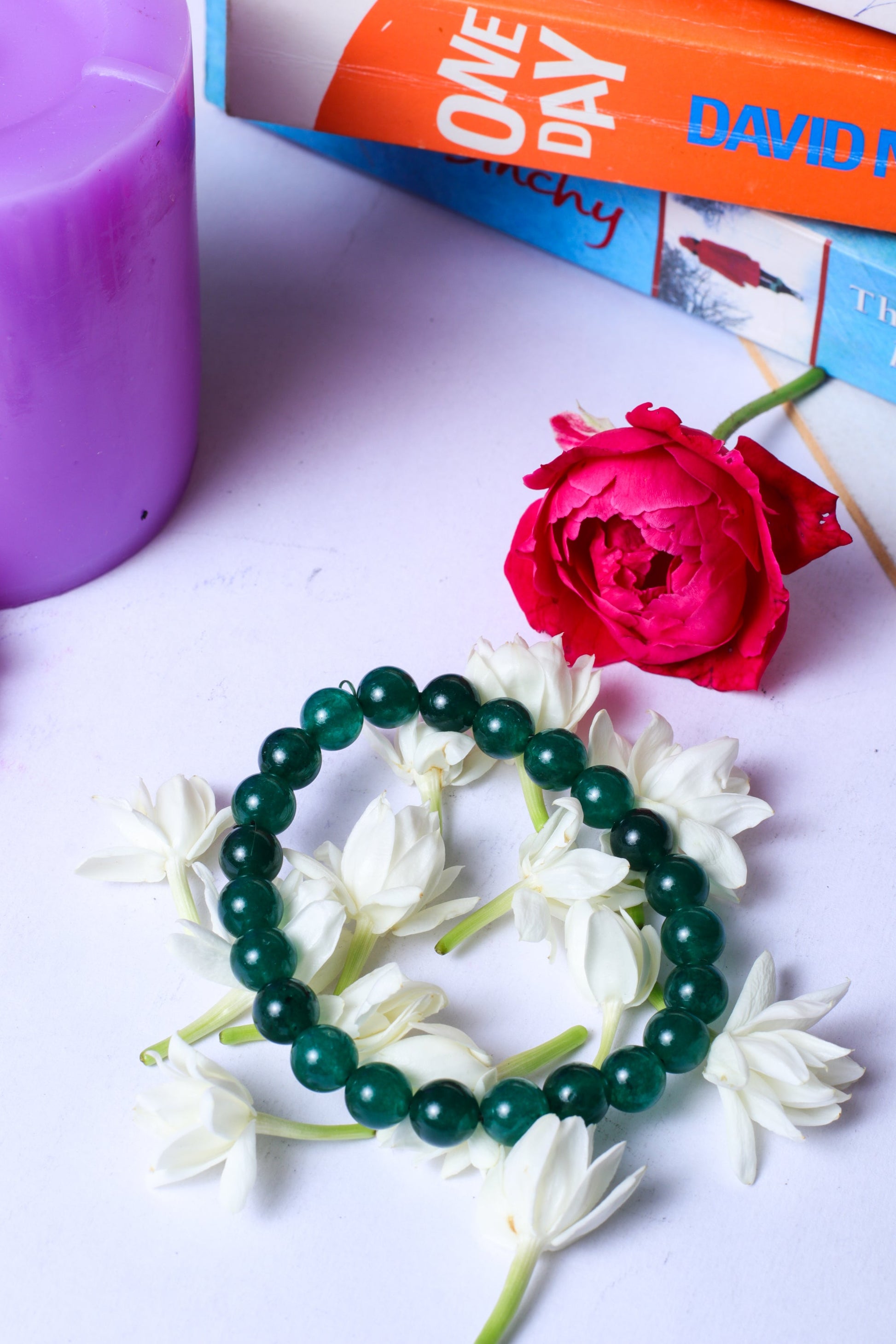 Benefits : A green jade bracelet is believed to bring harmony and balance, promoting peace and tranquility in the wearer's life. It is also thought to attract prosperity and abundance, fostering wealth and good fortune. Additionally, green jade is known for its healing properties, supporting physical health and emotional well-being by releasing negative emotions and promoting positive energy flow.