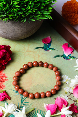 Expertly crafted with real red sunstone crystals, the Studio Vaidik bracelet adds a touch of elegance to any outfit. The elasticated band ensures a perfect fit for both men and women. Elevate your style with the power of sunstone.
