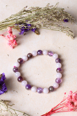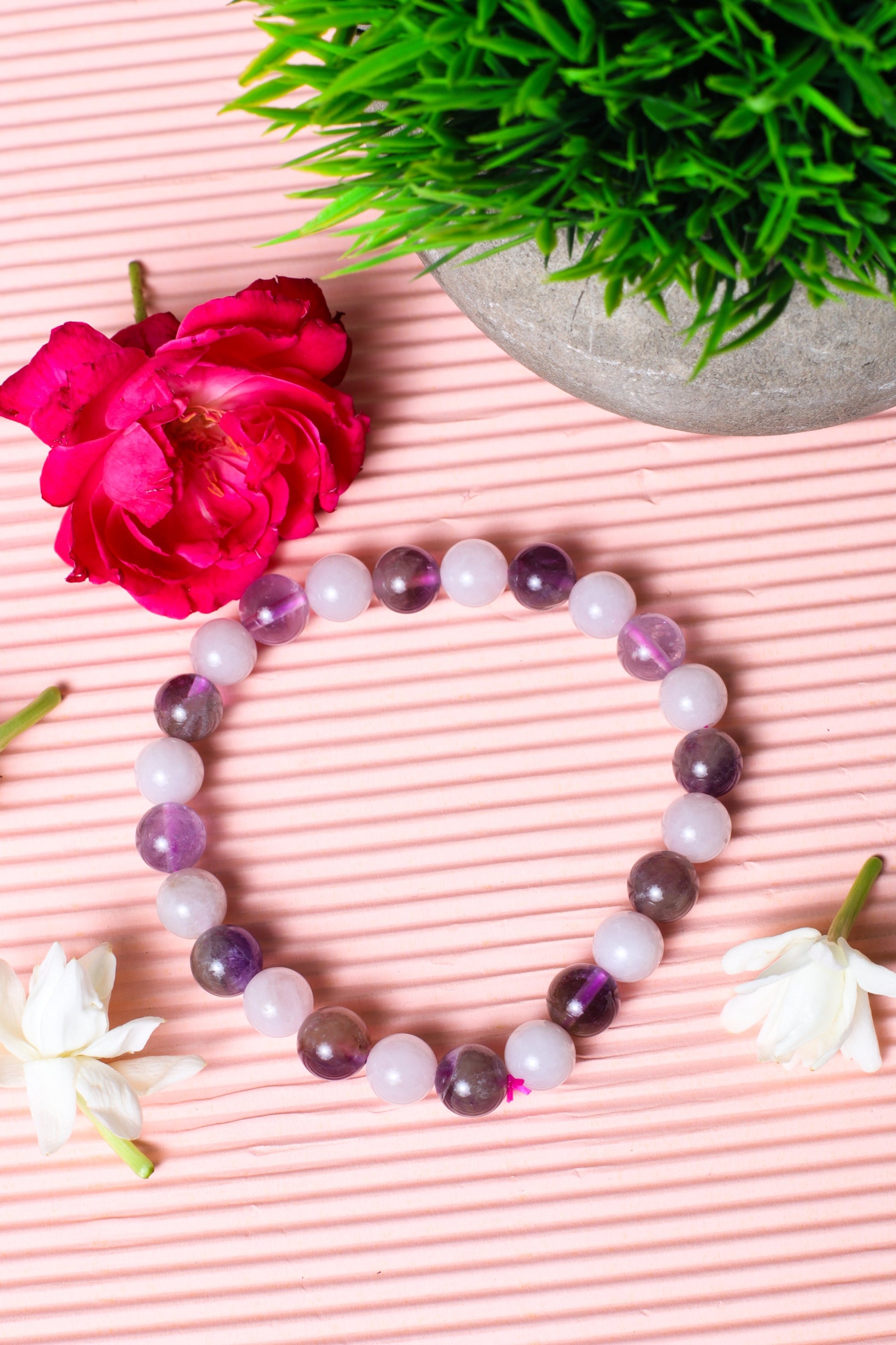 Benefits : A rose quartz and amethyst bracelet combines the benefits of both stones, promoting emotional healing and inner peace. Rose quartz is known for its ability to enhance love, compassion, and self-acceptance, while amethyst supports mental clarity, spiritual growth, and relaxation. Together, they foster a sense of calm, balance, and emotional harmony, making the bracelet a powerful tool for nurturing relationships and personal well-being.