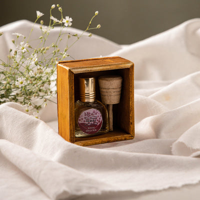 Handmade room diffuser made from natural herbs without using any chemical or artificial colours. Ingredients : Pure Essential Oil of Neroli. Benefits : It is the ingredient for the famous cologne fragrance. It relieves chronic depression, drives away sadness and invokes a feeling of joy. It is a natural aphrodisiac and promotes increase in libido. It is known to create romantic feelings. It relaxes both the body and the soul. It gives relief from anxiety, distress, anger and irritation. How To Use : Remove the metal cap and replace with the cork cap. Invert to let the oil get absorbed in the cork. Place the bottle upright on table of your work place, or bedroom to spread the aroma. You can also hang it in car or in your kitchen. |