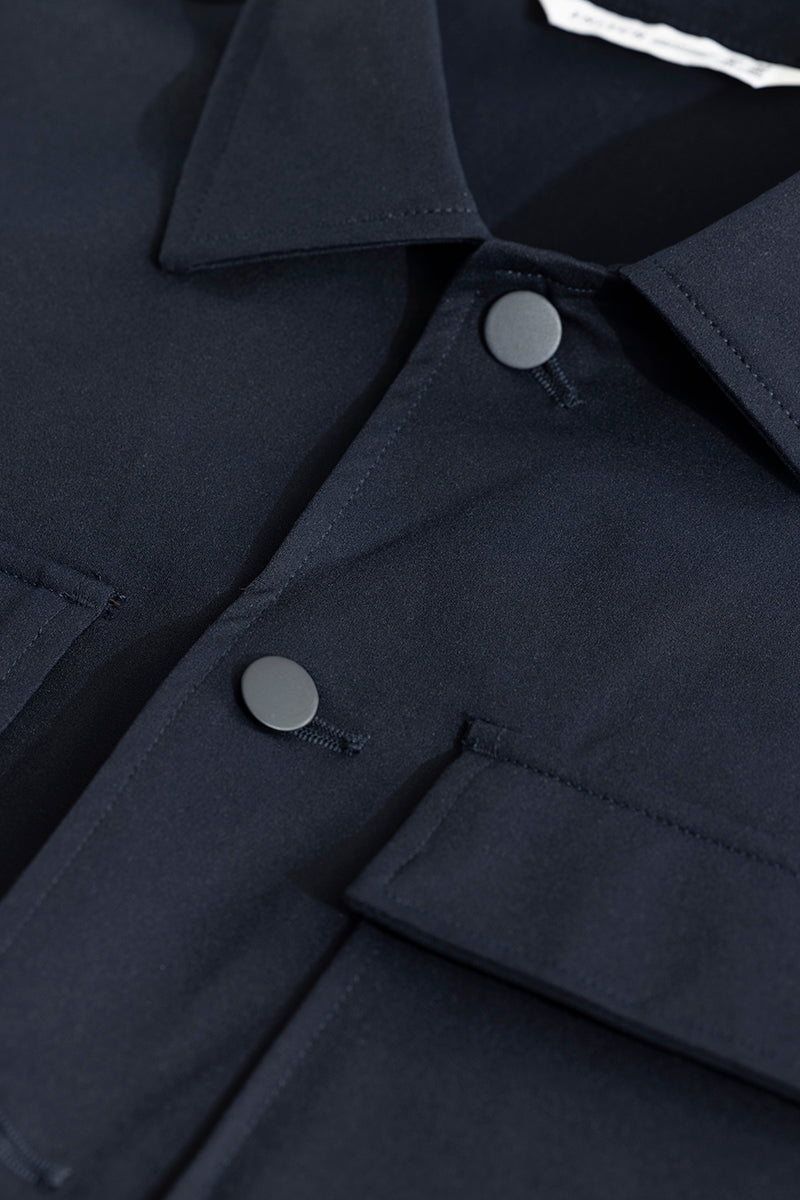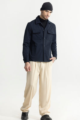 Introducing the ArcticBreeze Navy Jacket. Ideal for layering, this jacket is perfect for a weekend getaway, offering full sleeve coverage. Stay stylish with this versatile piece.