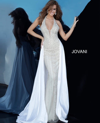 • Beaded Halter Overskirt Gown by Jovani 3698