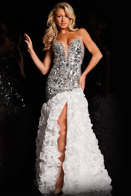 Beaded Sleeveless Ruffled Slit Gown by Jovani 37588