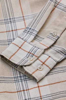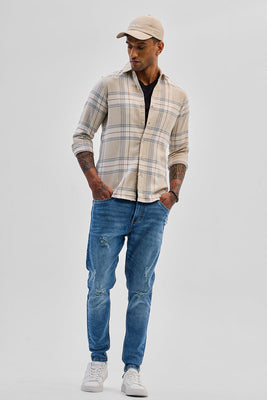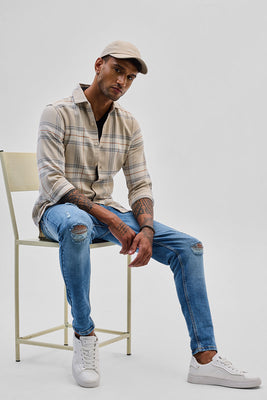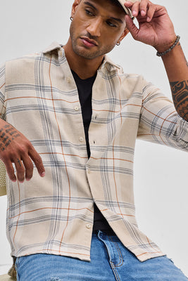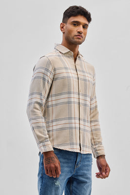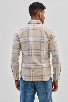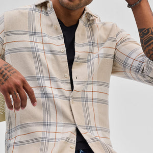 Give a majestic lift to your look with this beige checks pattern shirt. The shirt is crafted from fine 65% cotton, 35% polyester. It is a versatile staple and great for teaming with jeans for a more casual look or smartening up with a classic pair of chinos.