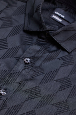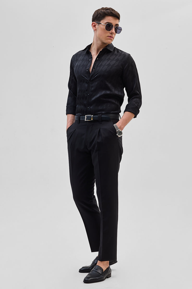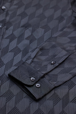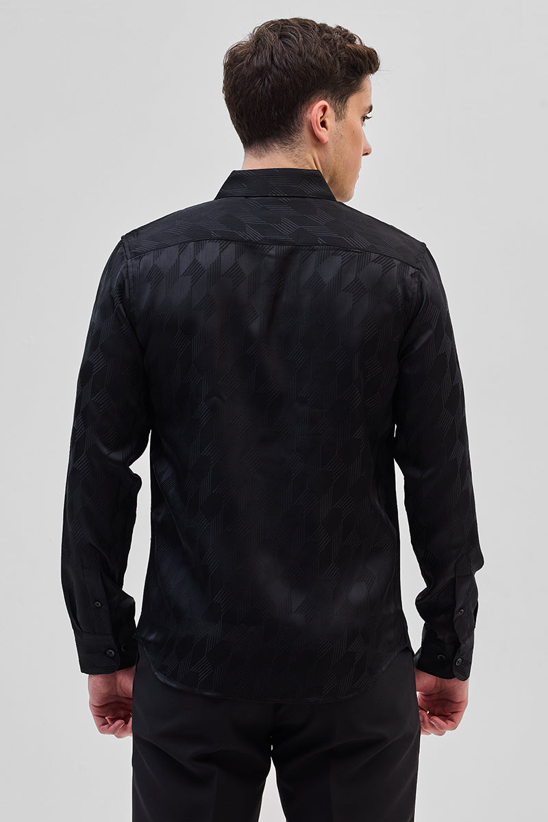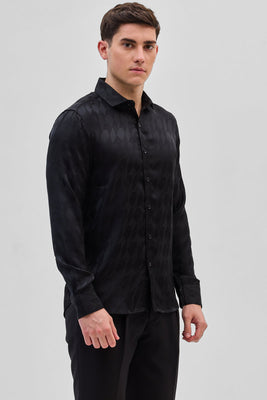 Give your everyday wardrobe an effortless appeal with this classy black 99% polyester,1% spandex shirt. Designed in a slim fit, this shirt is known for its endless versatility. A look that bridges dressy and casual, with full sleeve and spread, it is perfect to wear alone or as an outer layer.