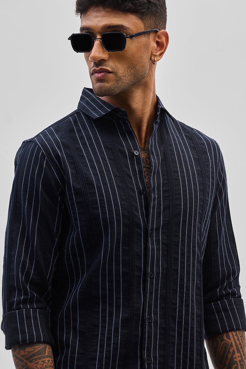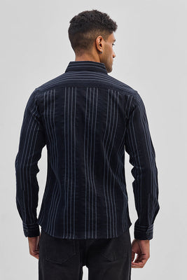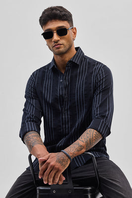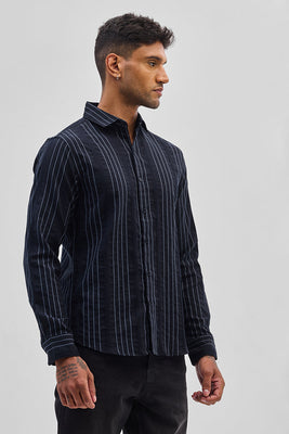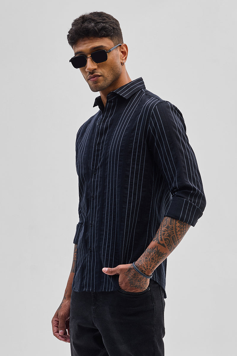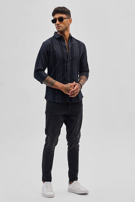 Give your everyday wardrobe an effortless appeal with this classy black 98% cotton, 2% spandex shirt. Designed in a slim fit, this shirt is known for its endless versatility. A look that bridges dressy and casual, with full sleeve and spread, it is perfect to wear alone or as an outer layer.