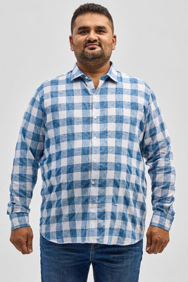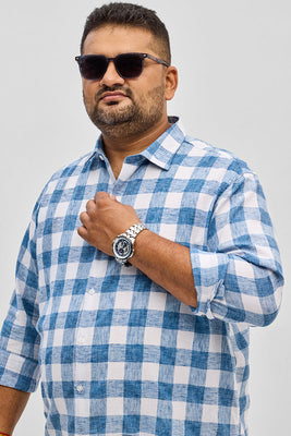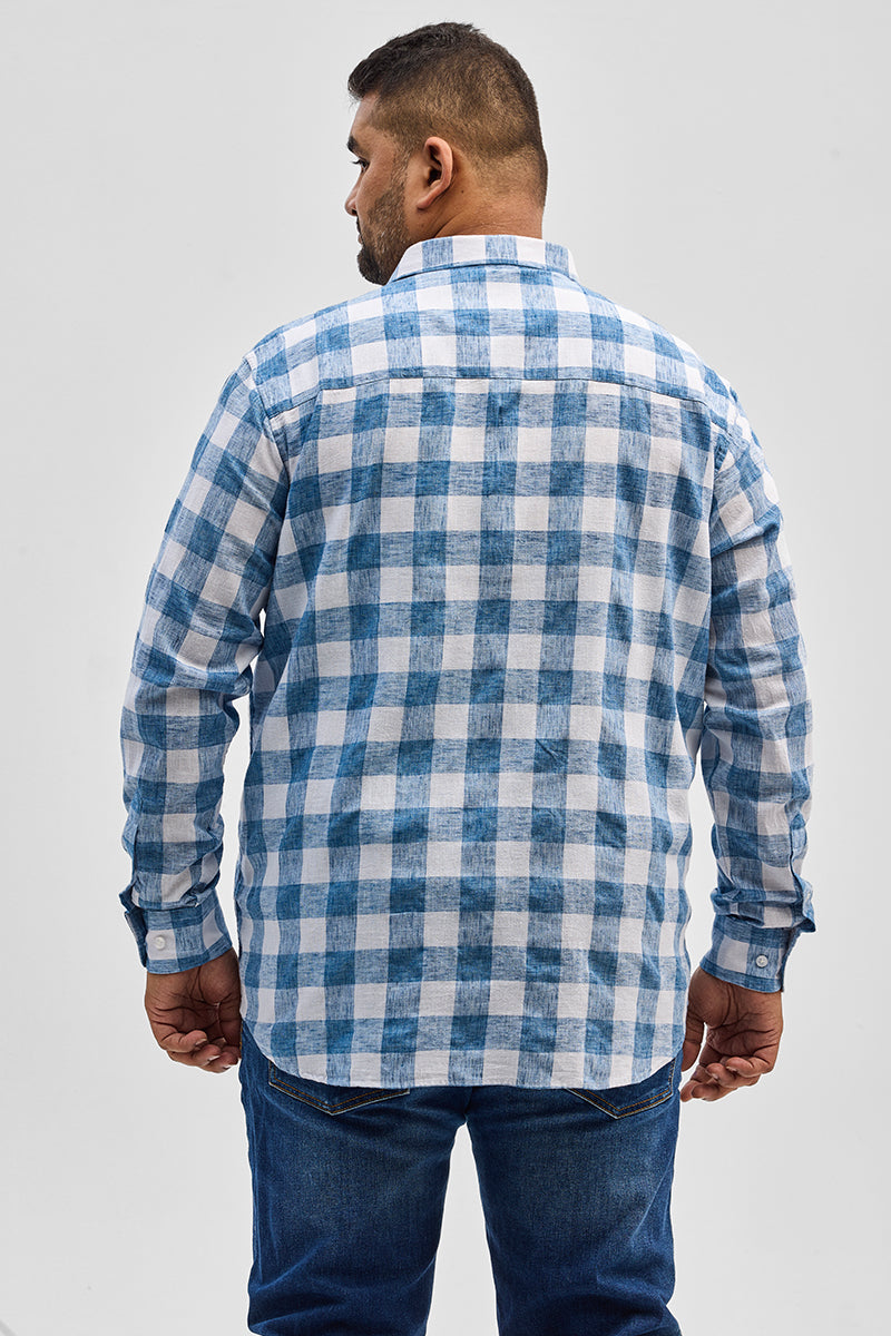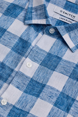 Blue Checks Linen Blend Shirt