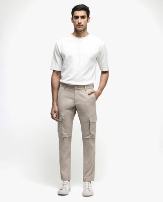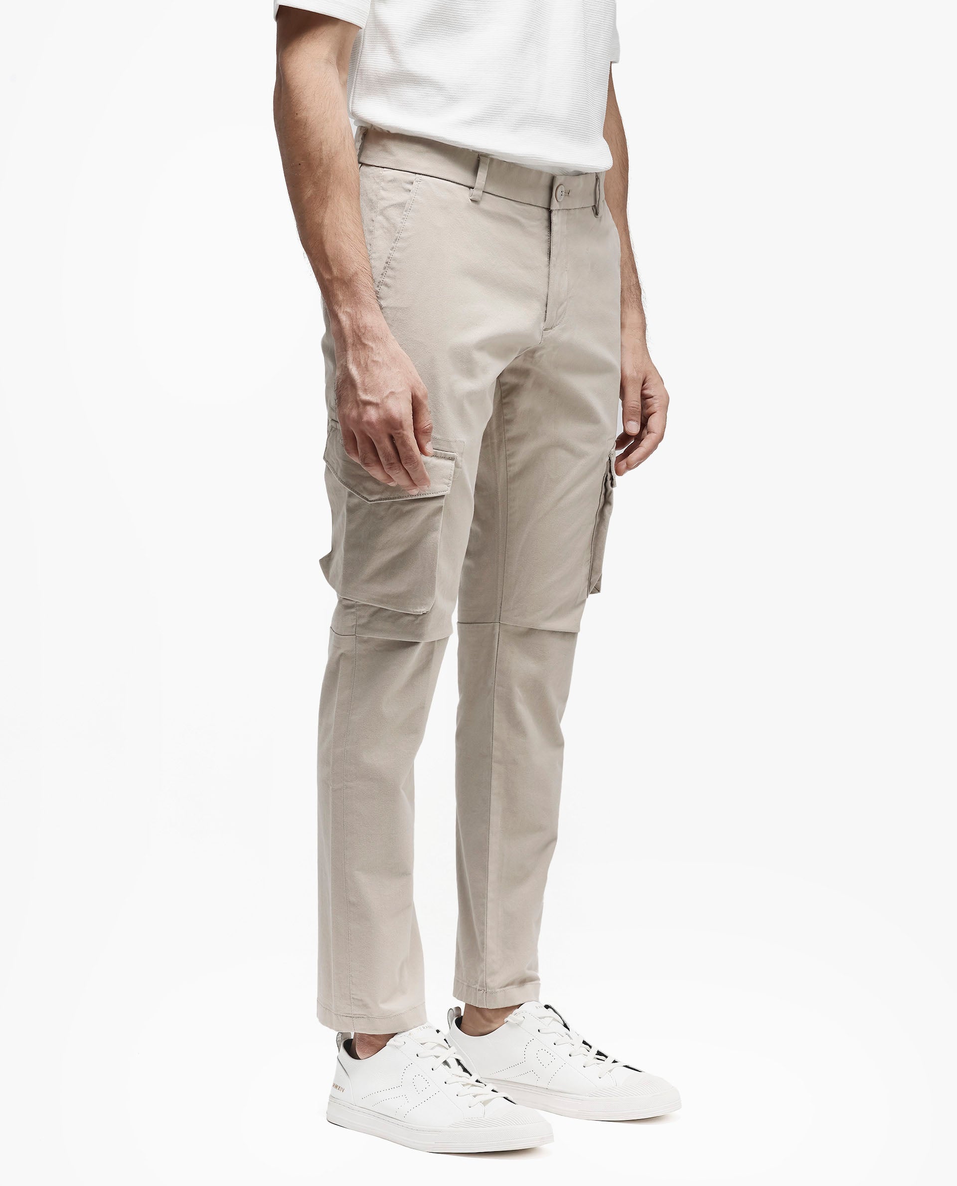 Move seamlessly from work to the weekend with these refined slim-fit cargo style trousers. The contemporary silhouette offers a polished look, while the six functional pockets provide discreet storage for your essentials. Crafted from premium fabric, these trousers ensure comfort and ease.