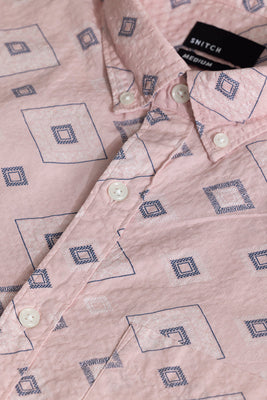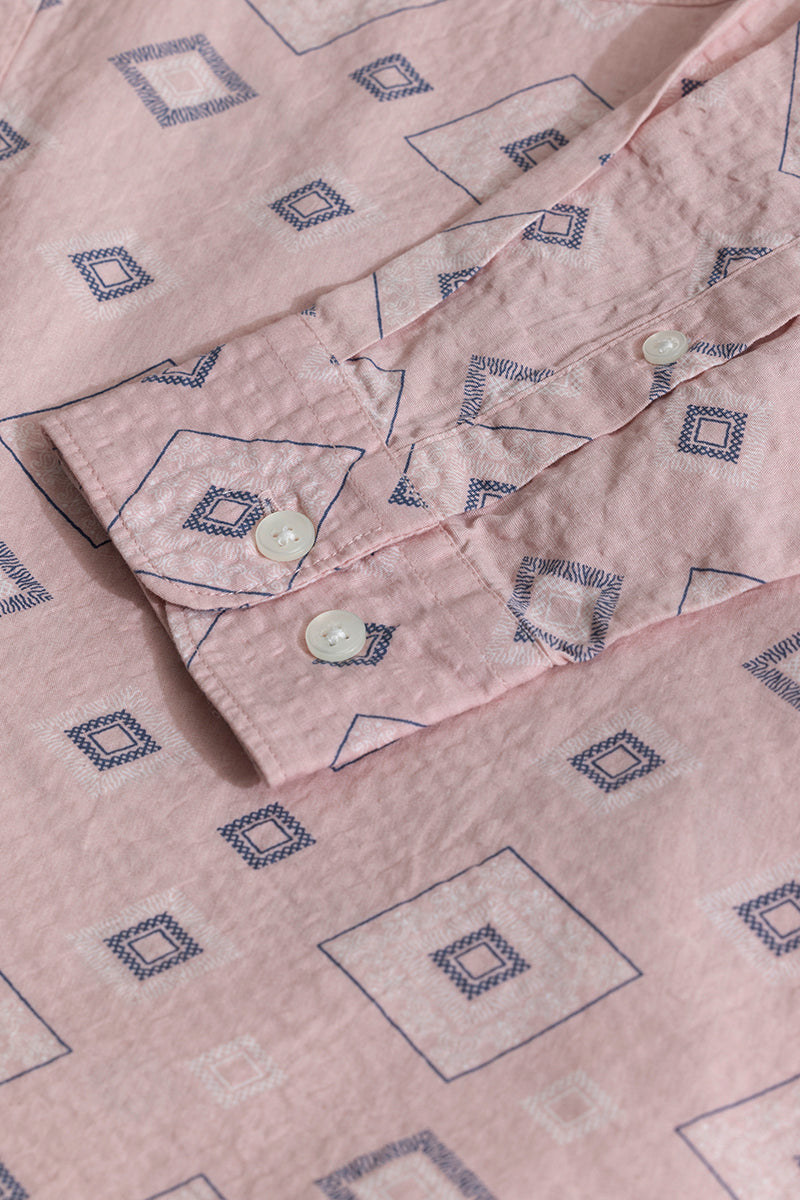 Get a sleek look with the Cloister Pink Seersucker Shirt. Its slim fit and seersucker fabric give you a flattering silhouette while staying trendy. Perfect for any occasion, this shirt adds a touch of sophistication to your wardrobe.
