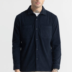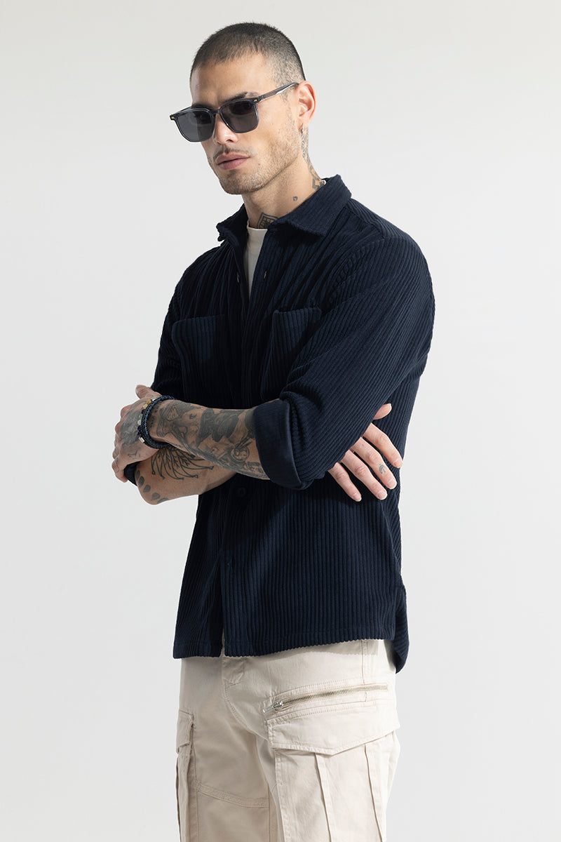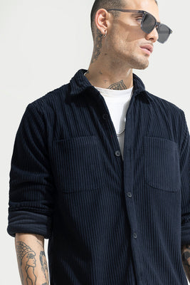 Introducing the Cozy Cord Navy Shirt, featuring full sleeves and a spread collar made of soft corduroy. With a straight hem, this shirt offers both comfort and style for any occasion. Stay warm and fashionable with this trendy and versatile piece.