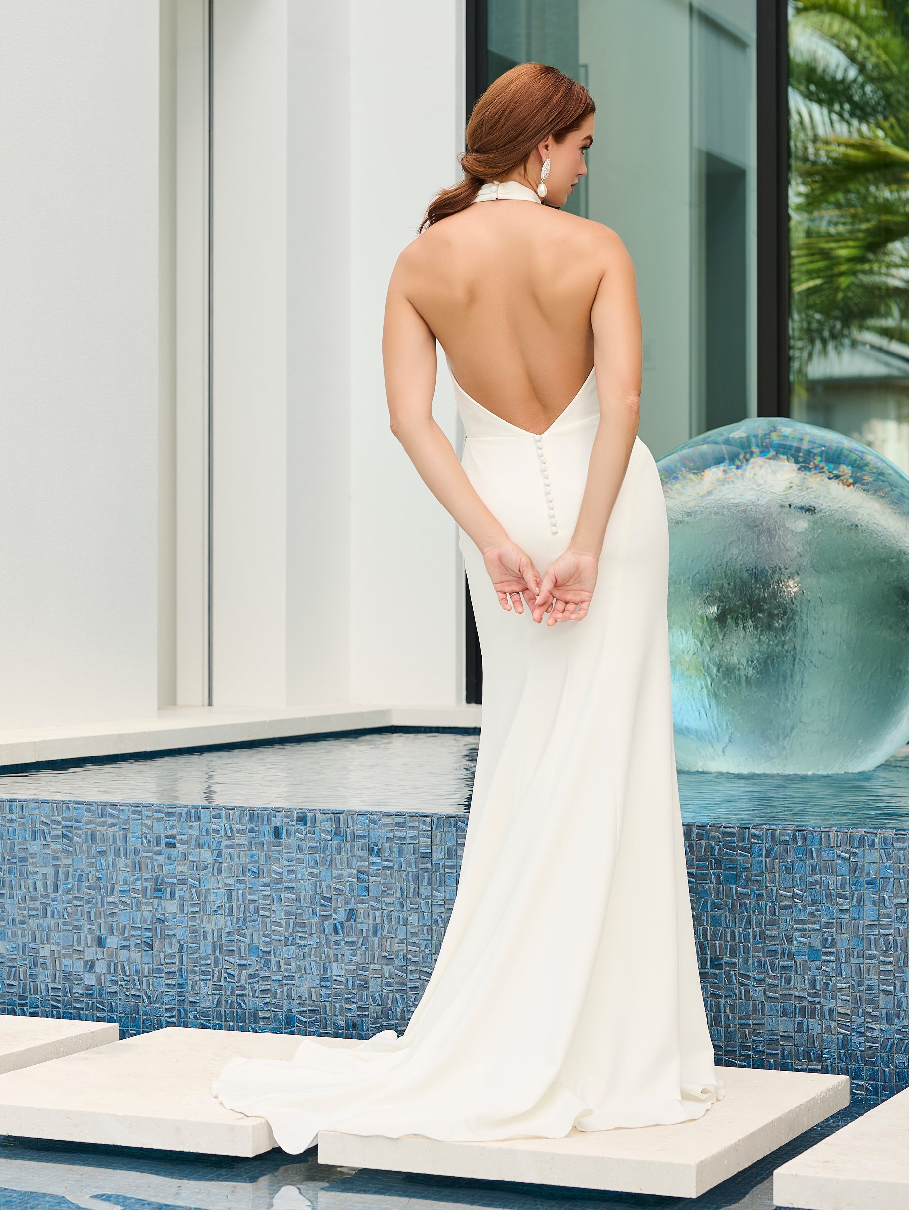 - Crepe Halter Slit Bridal Gown by Adrianna Papell 45016
