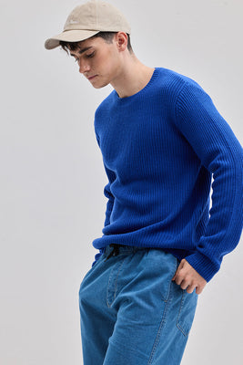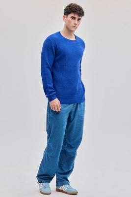 Layers aren't just for warmth, they're for style too. A dark blue plain pattern sweater is a true essential, the ultimate layering piece during the transitional months. snitch's sweater is crafted from 70% acrylic, 25% polyester, 5% elastane fabric and features a crew and full sleeve sleeve.