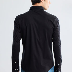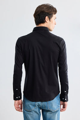Expertly crafted with stretch fabric, the EasyFlex Black Shirt provides comfort and versatility for everyday wear. Elevate your wardrobe with this essential piece.