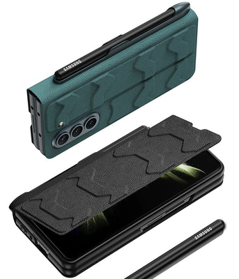 The Shell Film Integrated Warrior Leather Case with Pen Slot is a premium protective accessory designed specifically for the Samsung Galaxy Z Fold5. This innovative case offers a combination of rugged durability, elegant style, and functional convenience, making it an ideal choice for users who want to safeguard their device while enhancing its overall usability.