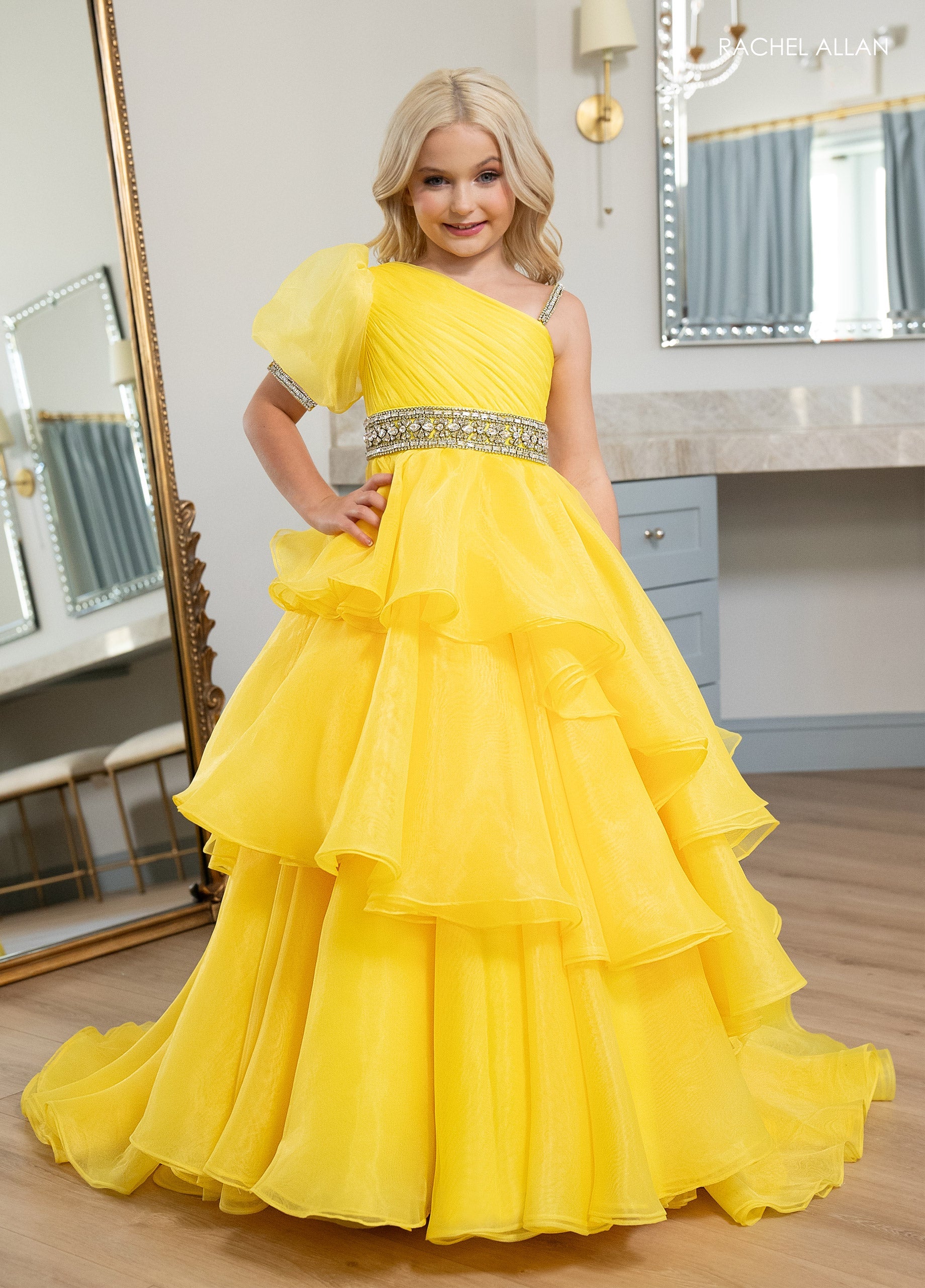 • Girl's One Shoulder Tiered Gown by Rachel Allan 10260