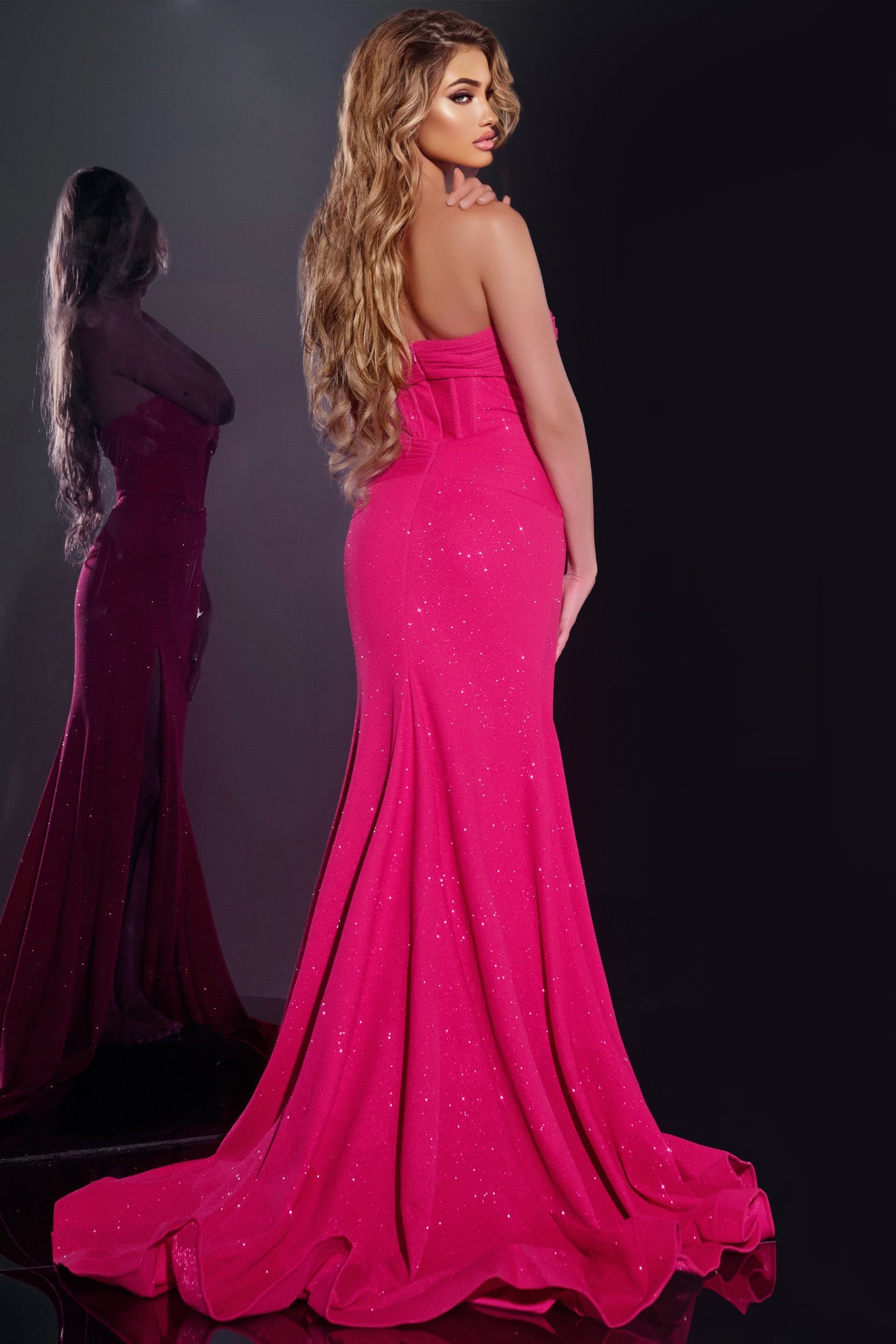 - Glitter Fitted Strapless Slit Gown by Jovani 43065