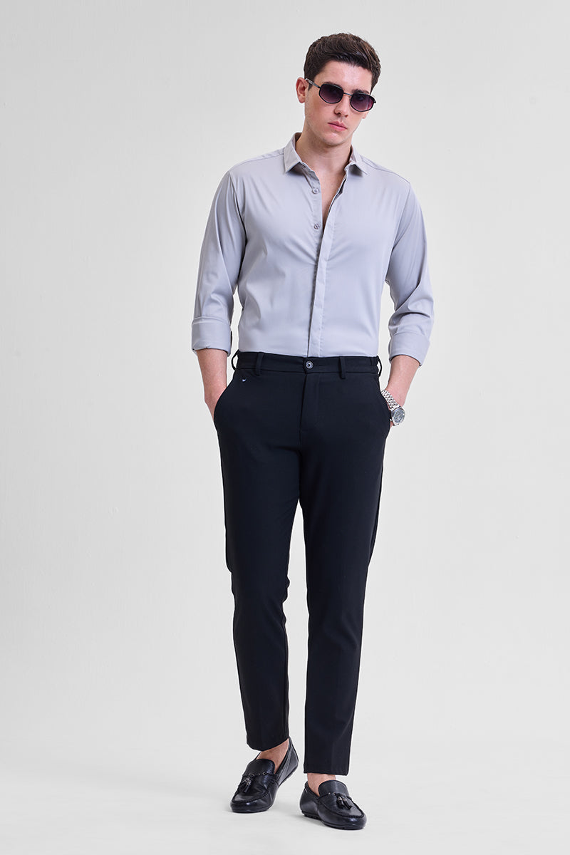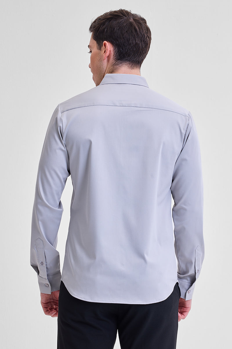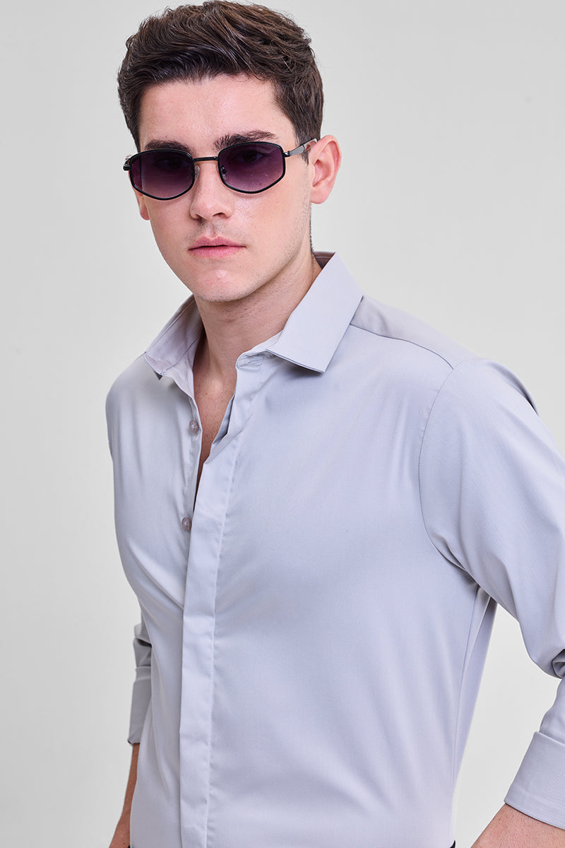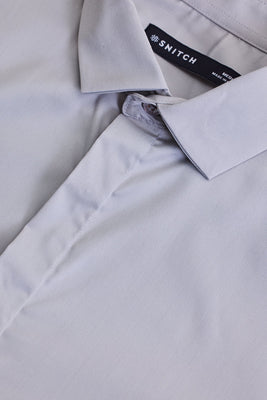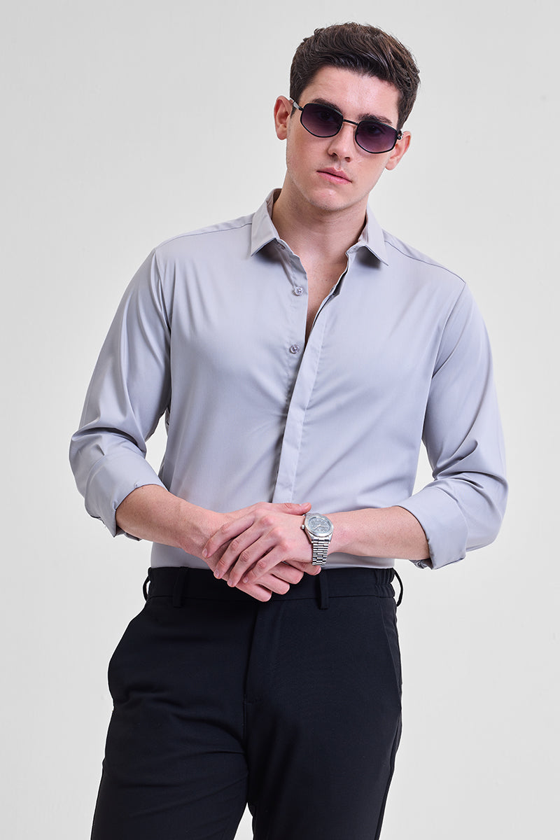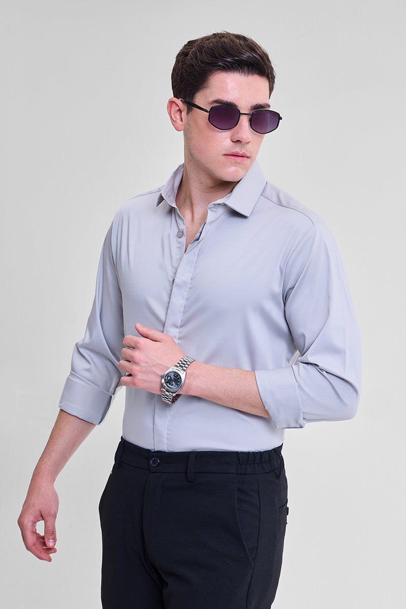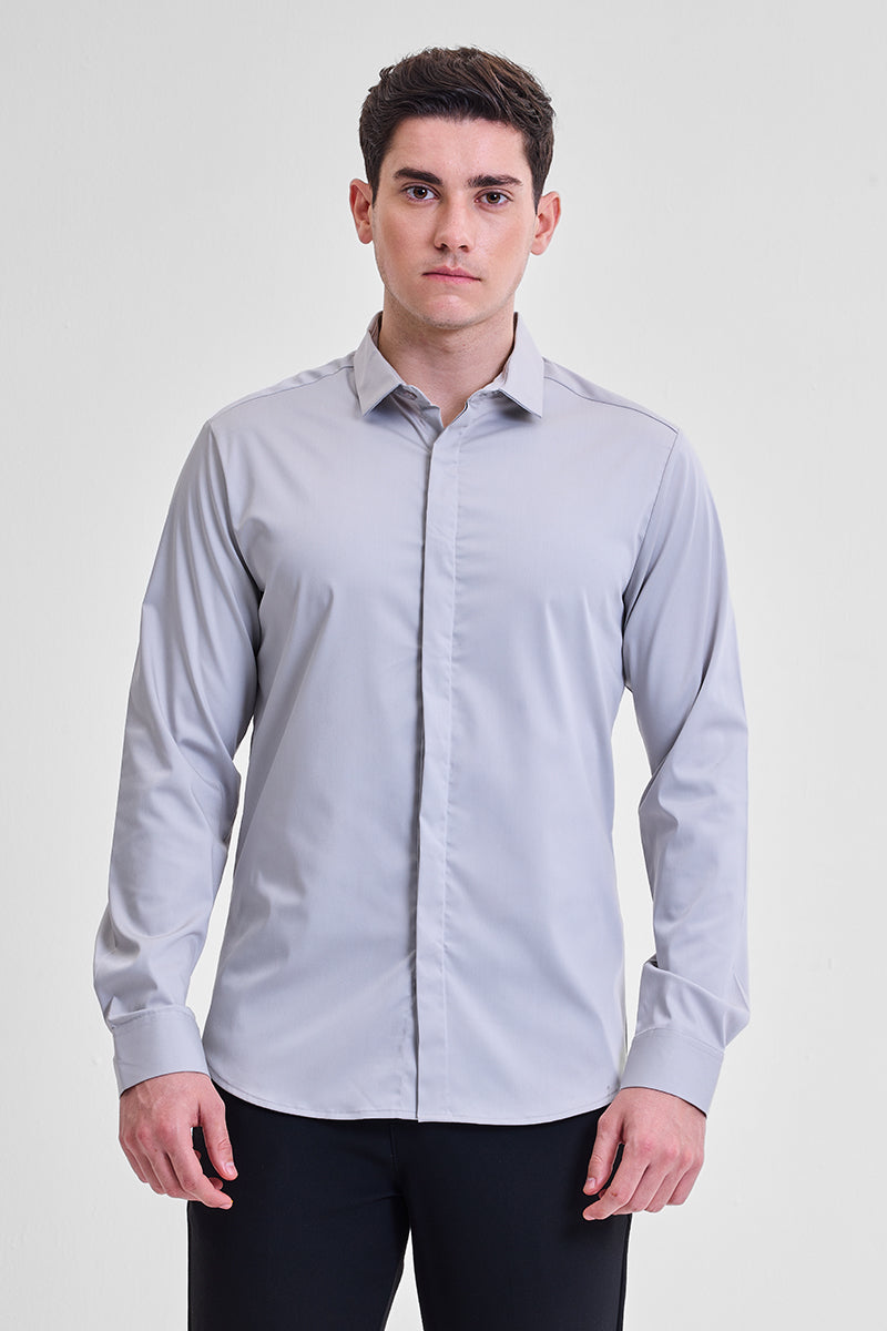 Grey Solid Concealed Placket Shirt